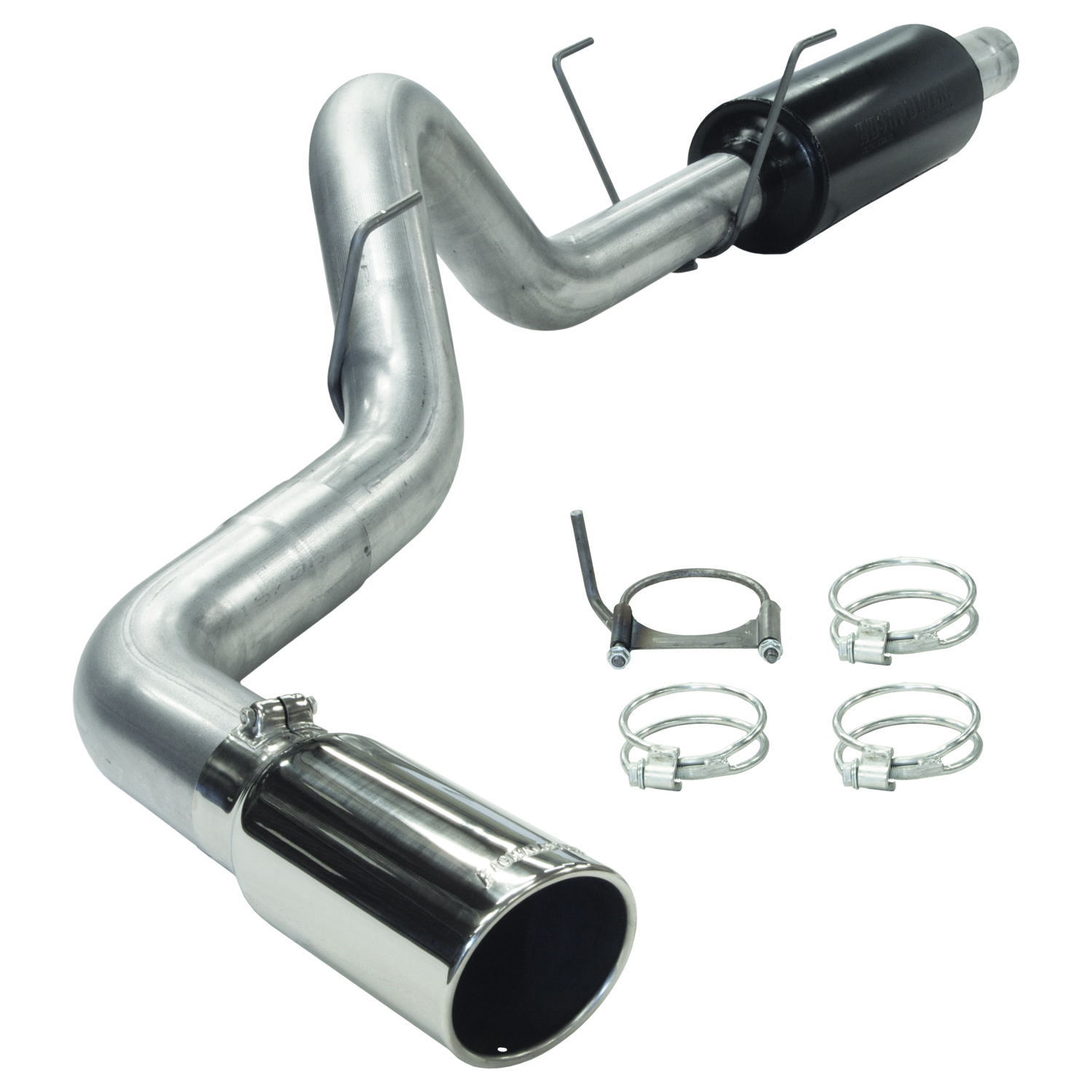 Aluminized Steel; With Muffler; 4 Inch Pipe Diameter; Single Exhaust With Single Exit; Side Exit; 5 Inch Rolled Edge Stainless Steel Tip