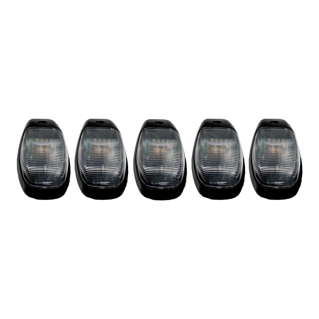 Direct Fit; Clear Lens; With Strobe and Running Light Function; High Power LED's; White/ Amber Bulbs; Set Of 5; With Wiring Harness/ Screws