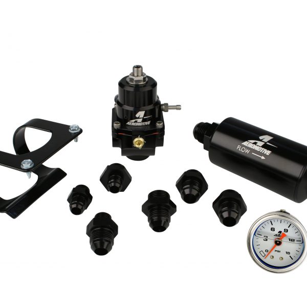 For Use With Return Style Single Carbureted Application; AN-06 Or AN-08; Black; Aluminum; With 10 Micron Filter; 15-PSI Liquid Filled Fuel Pressure Gauge