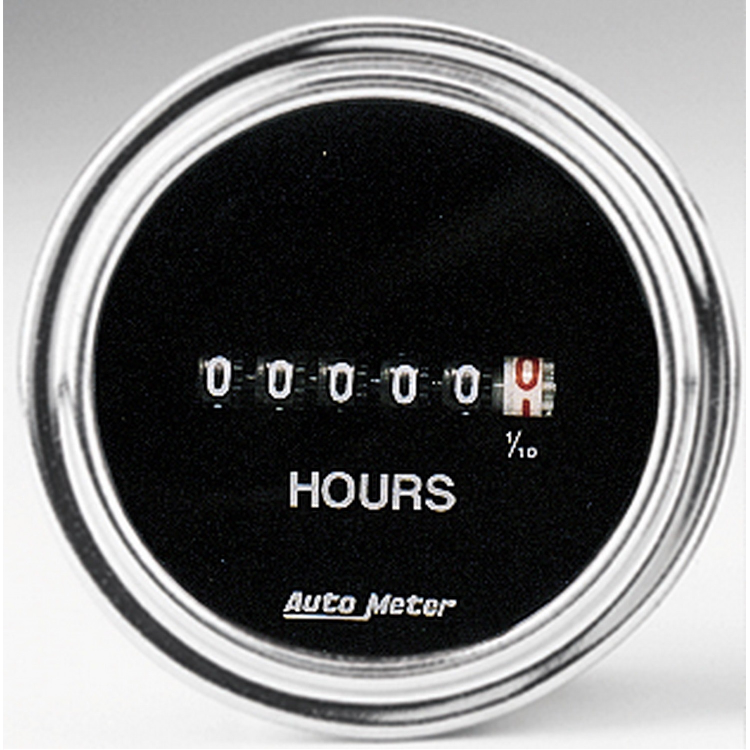 Traditional Chrome - 2-1/16 Inch; Short Sweep Mechanical; 0-99999.9 Range; 8-32 Volts DC Input; Analog Display; Black Face/ Chrome Bezel; Incandescent Around The Dial Lighting; Non-Resettable Quartz Meter