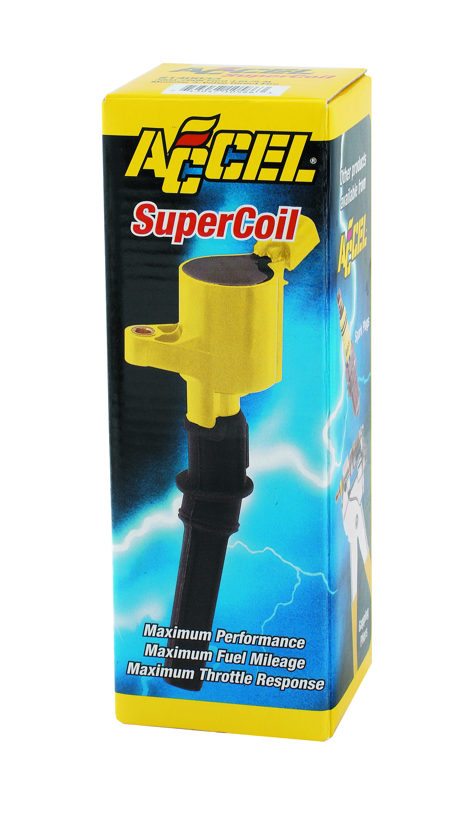 ACCEL 140001 SUPER COIL-12VOLTSuper Coil - Canister; 45000 Volts; 0.700 Ohms Primary Resistance/11.8K Ohms Secondary Resistance/70:1 Turns Ratio; Yellow/Brown; Single MFG: ACCEL IGNITIONMFG Part Number: 140001A35140001ships from manufacturer $229.99 Details...