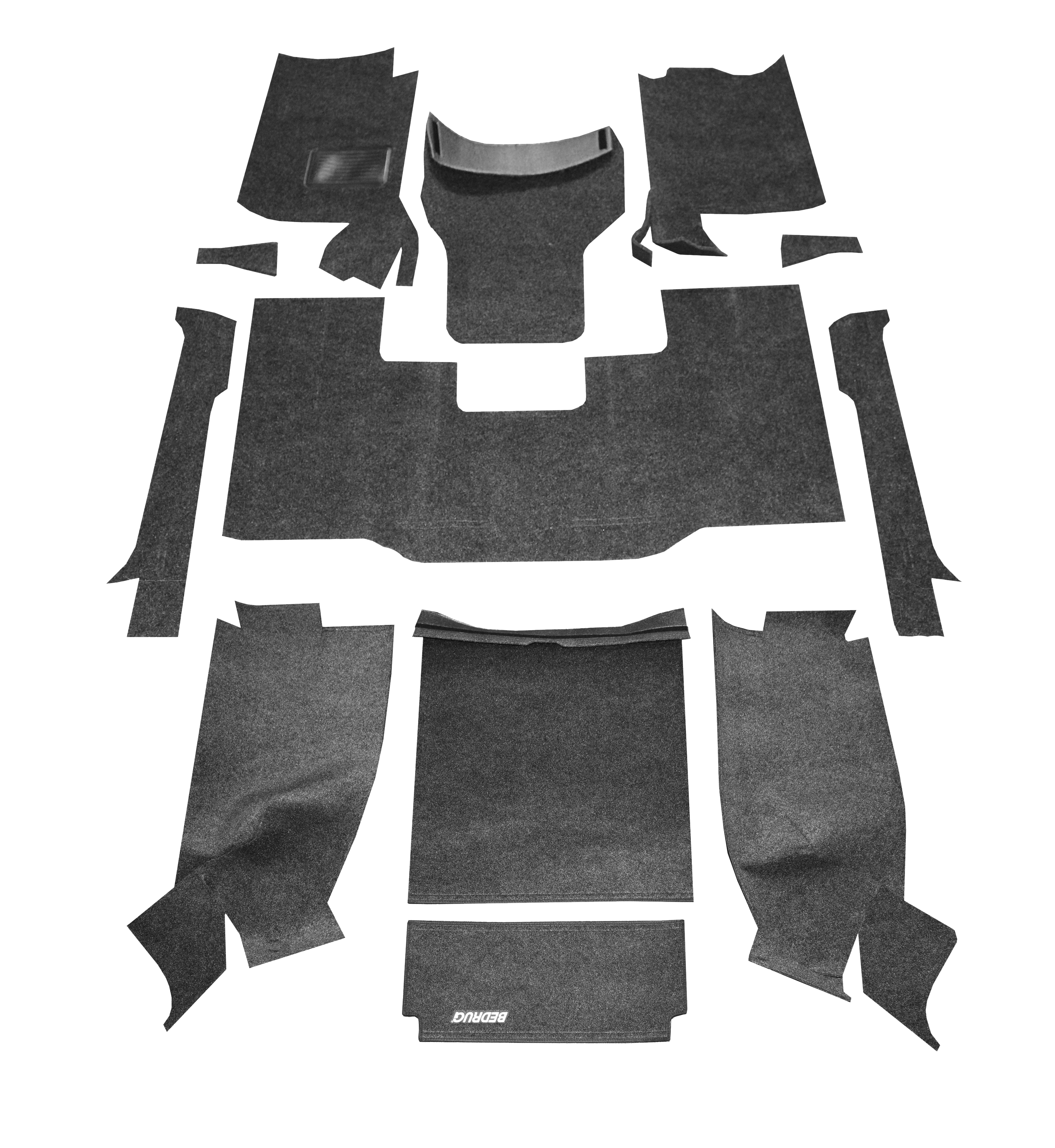 Direct-Fit; Dark Gray; Carpet-Like Polypropylene; 12 Piece Complete Front And Rear Kit; Driver, Passenger And Rear Seat Foot Well Covers/Transmission Hump Cover/ 4 Side Body Covers/ 2 Wheel Well Covers/ Cargo Floor/ Tailgate Cover