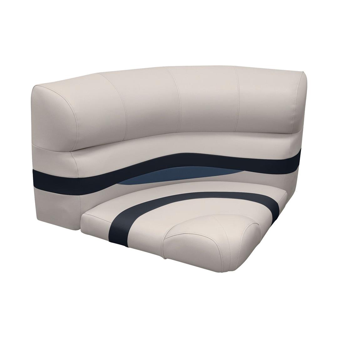 Passenger Seat; Bow Radius Corner Type; Non-Adjustable; Non-Foldable; 28 Inch Length x 28-1/2 Inch Depth x 30 Inch Height Seat; Platinum/ Midnight Blue And Cobalt Blue; Marine Grade Vinyl Fabric; Without Headrest; Boat Seat Mount Sold Separately