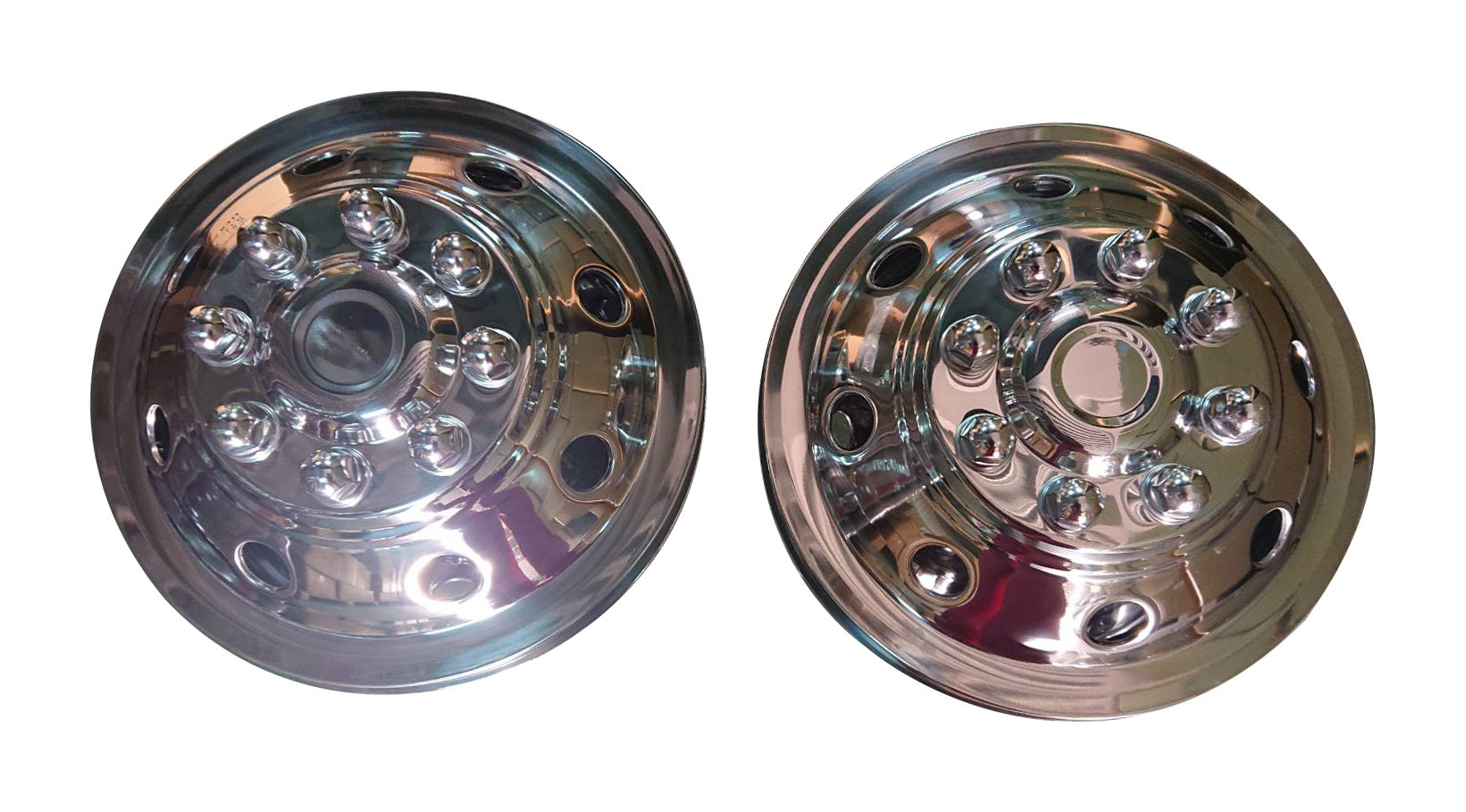 Fits 16 Inch Wheels; Stainless Steel; Snap-In; 8 Lug Wheels; Set Of 4; With 2 Front Wheel Liners/ 2 Rear Wheel Liners/ 4 Axle Covers