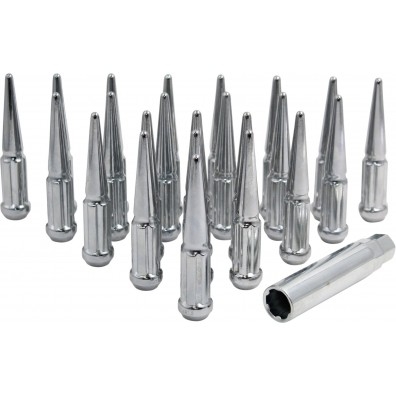 5 Lug Kit; 12 Millimeter x 1.5 Thread Size; 60 Degree Conical; Spline Drive; Acorn Duplex; 4.4 Inch Overall Length; 6 Spline Tool; With 20 Chrome Plated Steel Lug Nut/ Socket Key