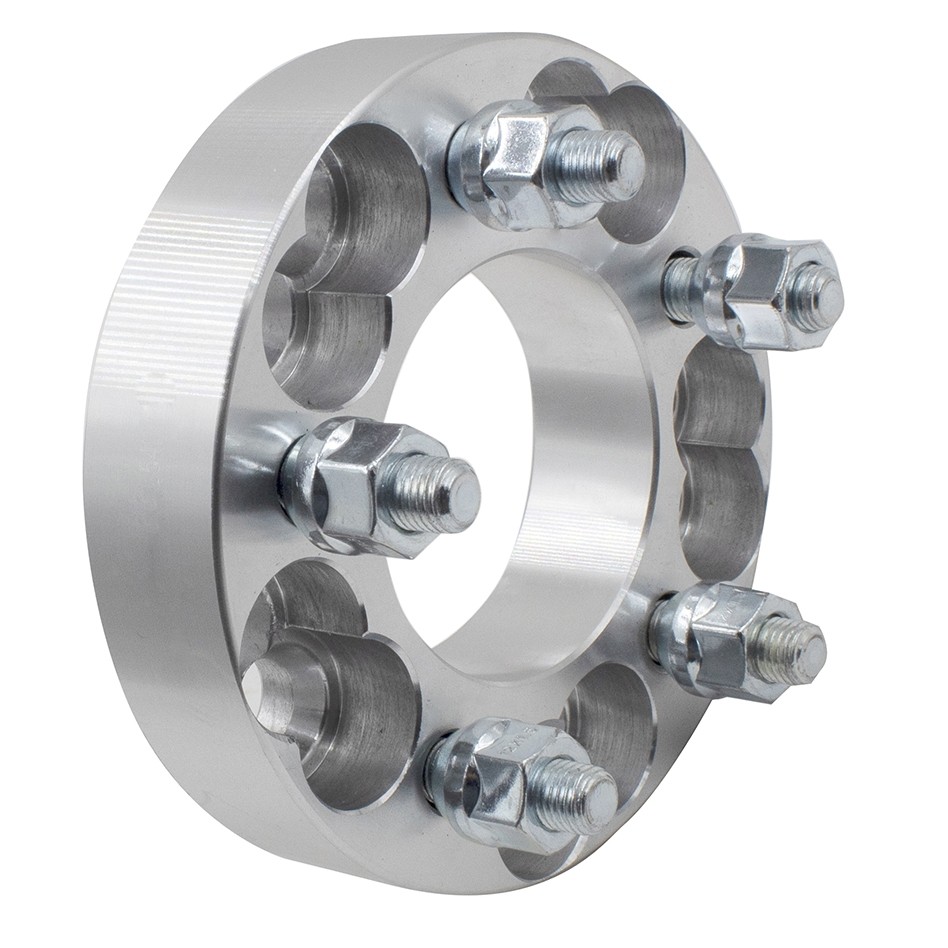 5 x 114.3 Millimeter/ 5 x 4.50 Inch/ 5 x 120.7 Millimeter/ 5 x 4.75 Inch Axle Bolt Circle; 5 x 135 Millimeter/ 5 x 5.31 Inch Wheel Bolt Circle; 12 x 1.5 Thread Size Studs; 74.10 Inside Diameter Hub Size/ 74.10 Outside Diameter Hub Size; 1-1/4 Inch Thick; Clear Anodized; Billet Aluminum; 1 Adapter And 5 Lugnuts