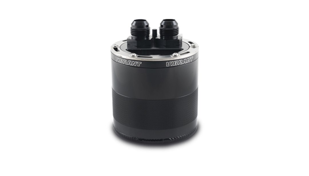 Universal; Small; 4.93 Inch Length; .75 Liter Capacity; 2 Port; -12 ORB Male to -12 AN Male Adapters and -8 ORB Male Drain Plug; Anodized; Black; T6061 Aluminum