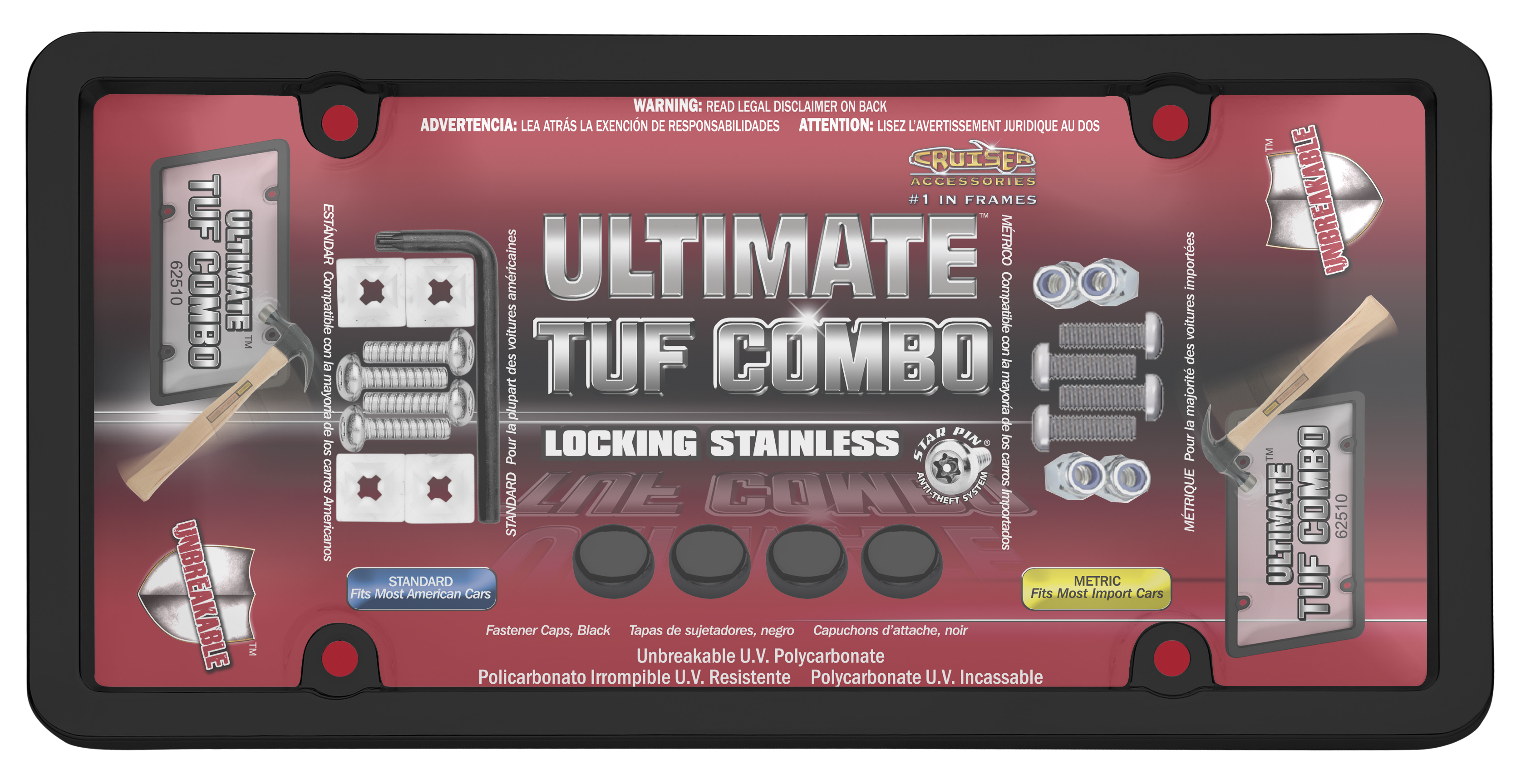 CRUISER 62510 ULT. TUF COMBO BLACK/CLRUltimate Tuf Combo - Without Design; Black; Die Cast Zinc; With Clear Tuf Shield/ Anti-Theft Locking Fasteners And Black Fastener Caps MFG: CRUISERMFG Part Number: 62510C3462510 $50.88 Details...