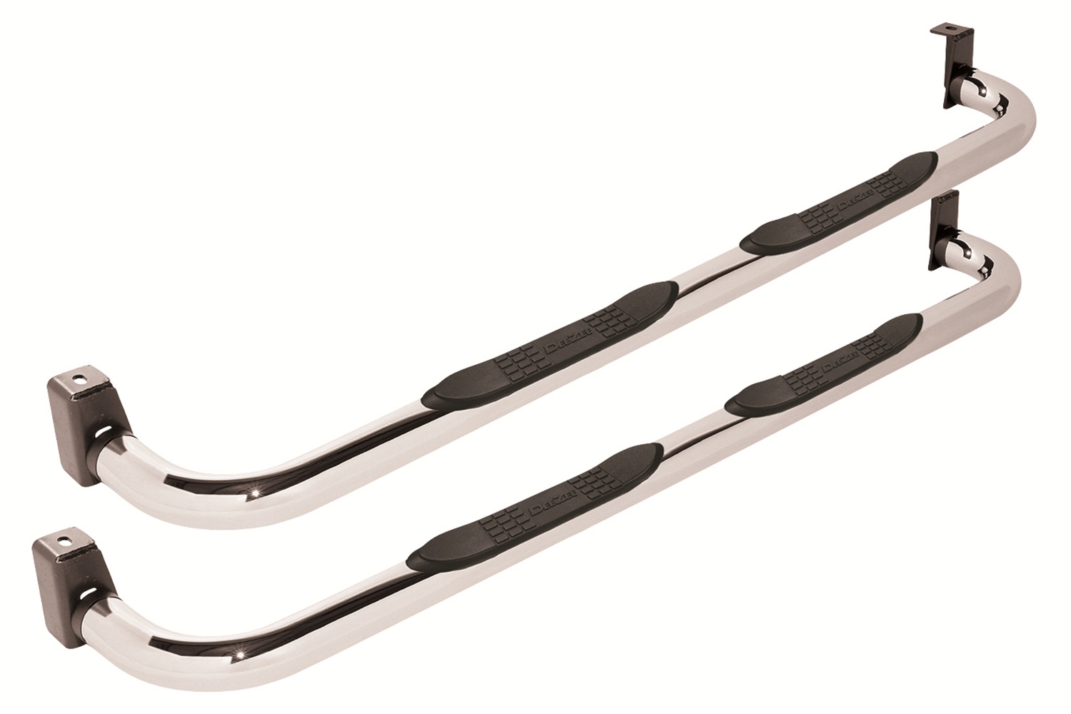 With Step Pads; 3 Inch Round Bent; Polished; Stainless Steel; Without End Caps; Frame Body Mount Bolts