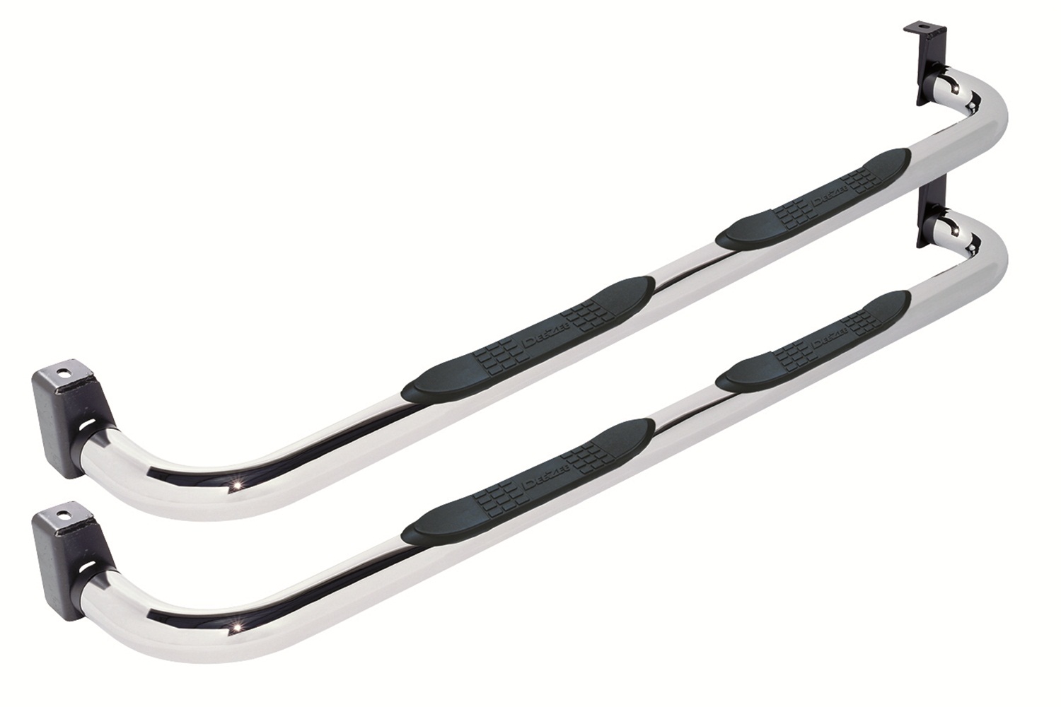 With Step Pads; 3 Inch Round Bent; Polished; Stainless Steel; Without End Caps;
