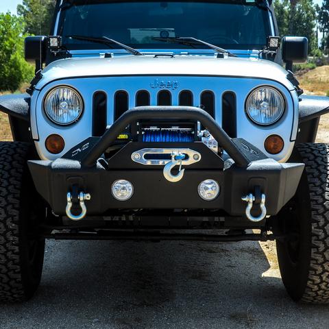 Modular Design; Direct Fit; Mounting Hardware Included; With Stinger Bar and Skid Plate; Stubby Width; With Winch Plate/ Will Support a 12500 Pound Rated Winch; With 7/8 Inch D-Ring Shackles; With Cut Out For OE Fog Lights; Powder Coated; Black; Steel