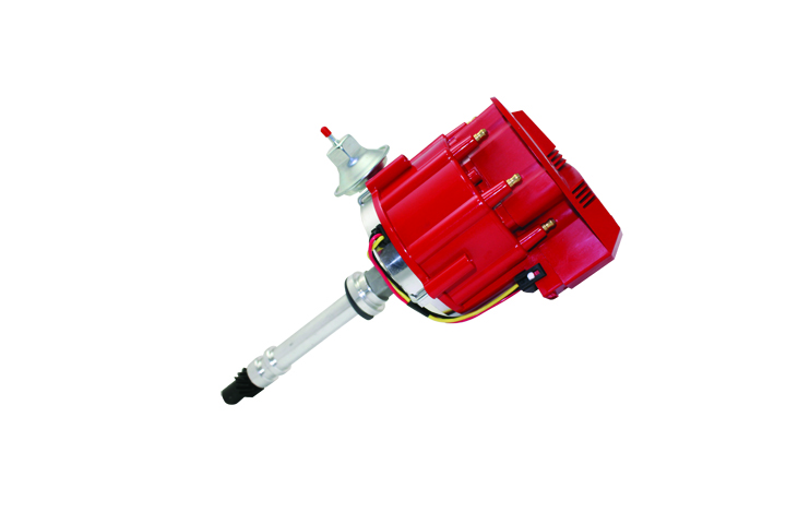 For Use With 262-454 Cubic Inch Big Block/ Small Block Chevrolet Engines; With Ignition Control Module; Magnetic Trigger; Vacuum Advance; Chromoly Steel Gear; Red Cap With HEI/Male Posts; Polished Billet Aluminum Shaft
