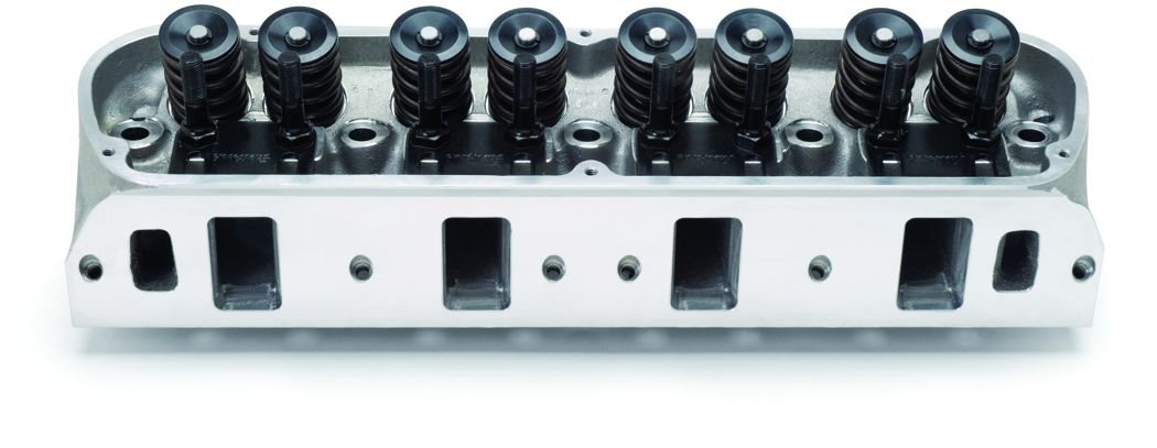 Assembled; Ford Windsor 4.7L-5.8L/289-351 Cubic Inch; Natural Aluminum; 210 CC Intake Port; Raised 0.130 Inch 75 CC Exhaust Port; 60 CC Chamber Volume; 2.05 Inch Intake Valve; 1.60 Inch Exhaust Valve; 1.55 Inch Spring Diameter; 20 Degree Valve Angle; Single; With Pushrod Guides