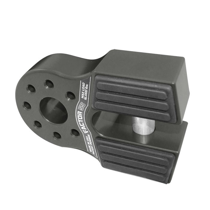 Fits 3/4 Inch Clevis Hook; Fits 3/8 Inch Diameter Steel Cables/ Synthetic Winch Ropes; 16000 Pound Load Capacity; Anodized; Black; Billet Aluminum; With EPDM Rubber Guard And 5/8 Inch Diameter Grade 5 Steel Double Shear Pin