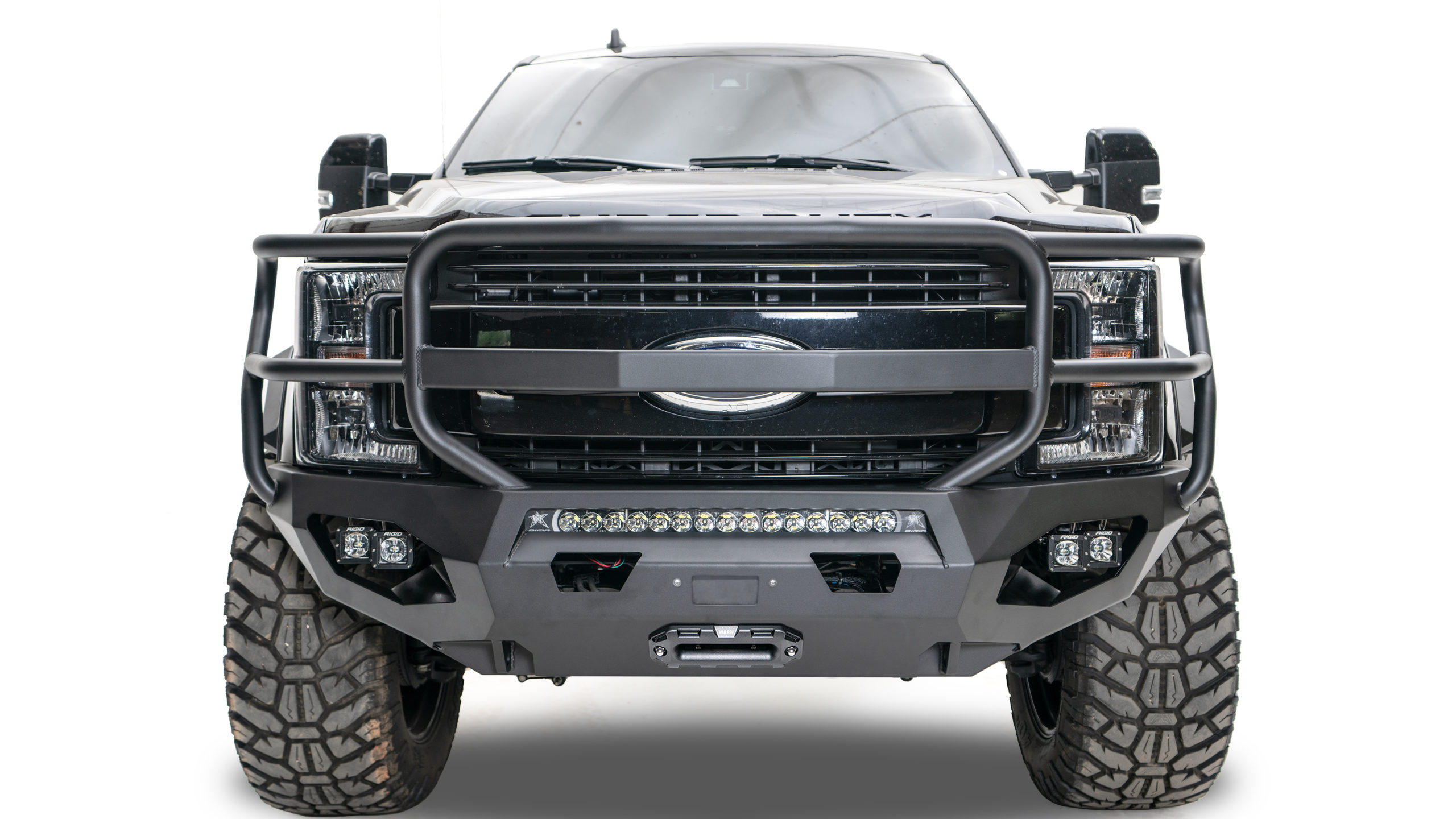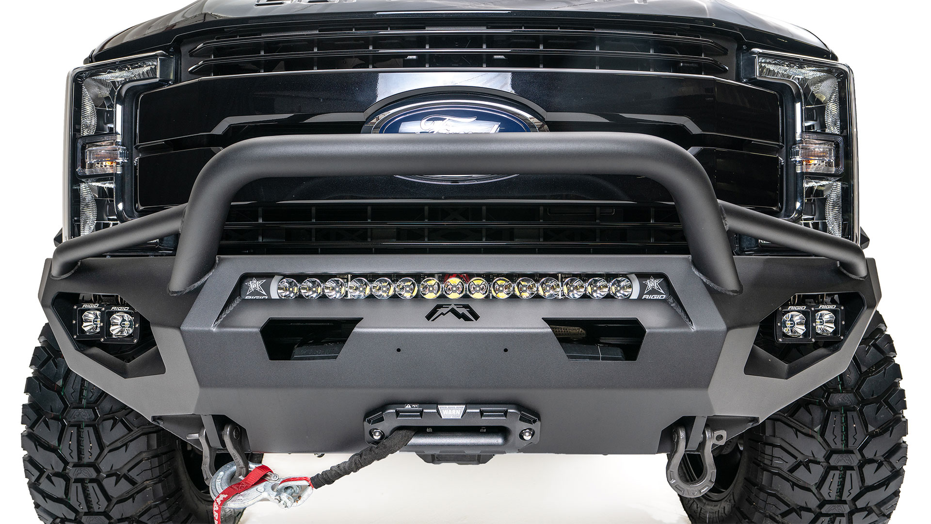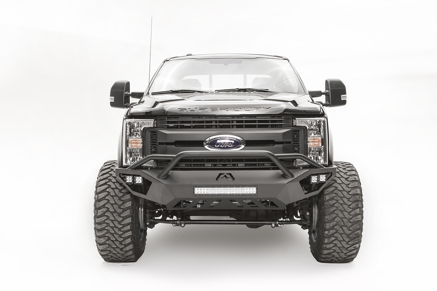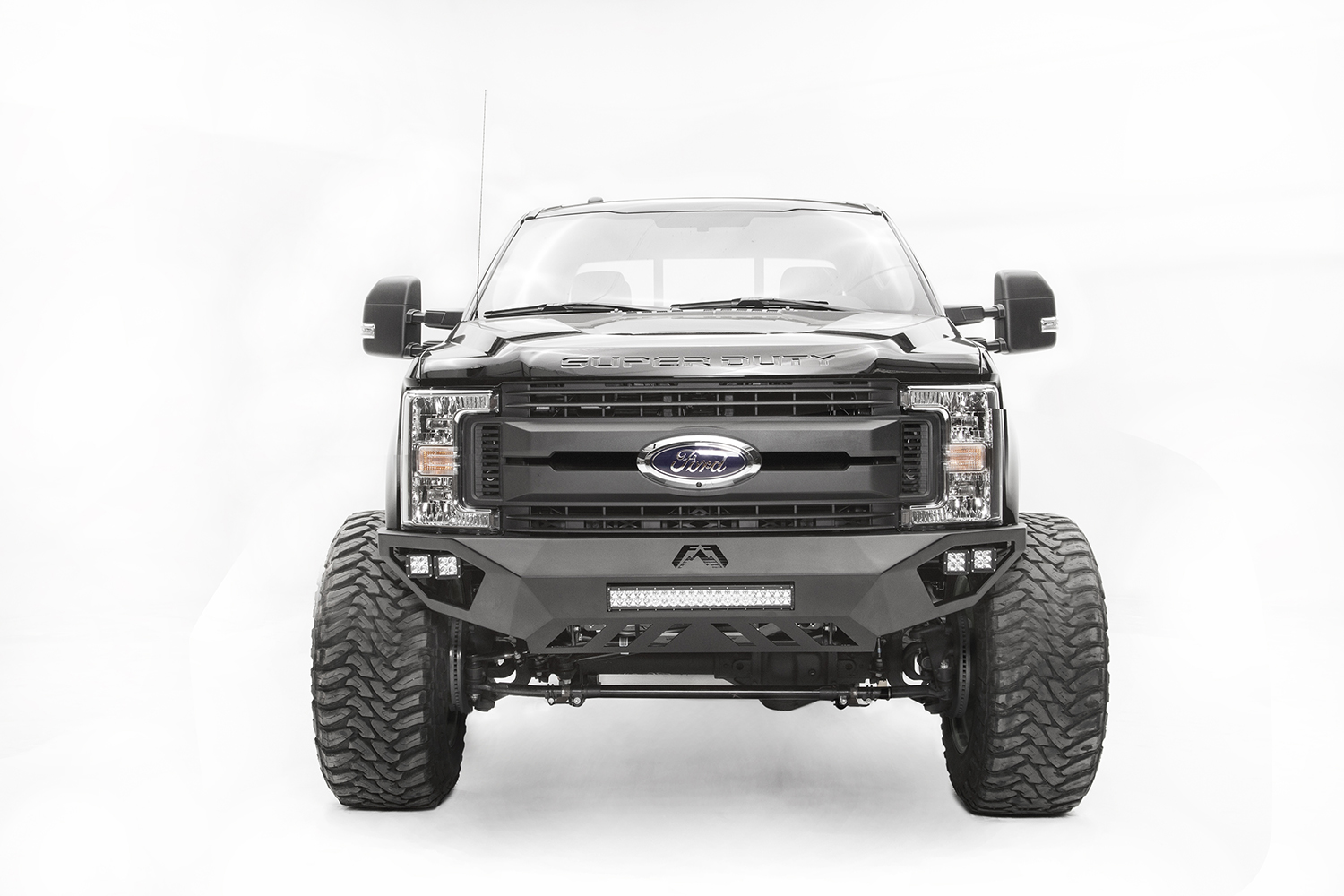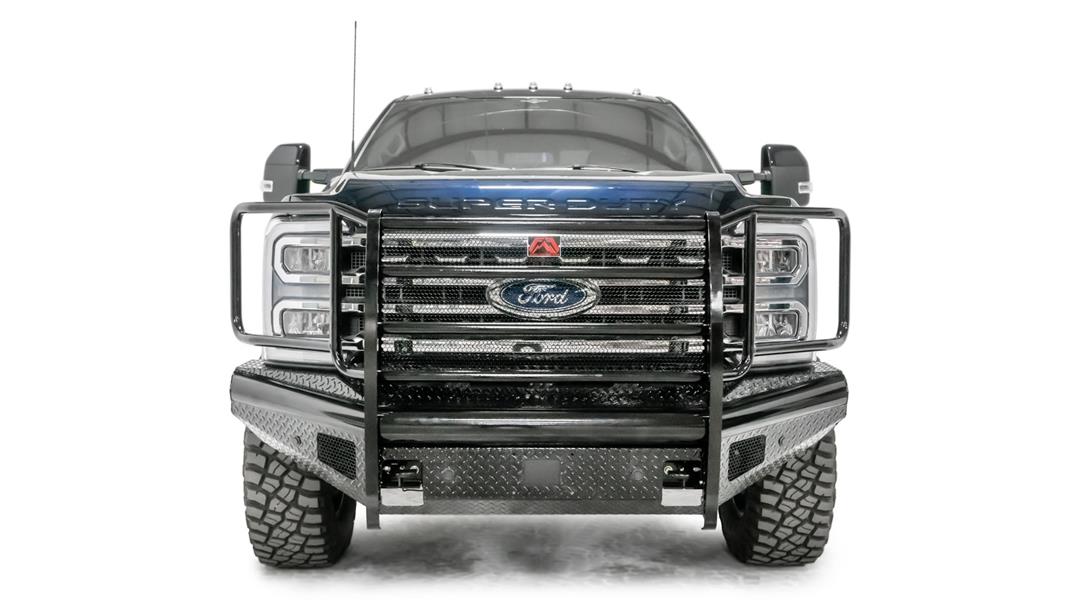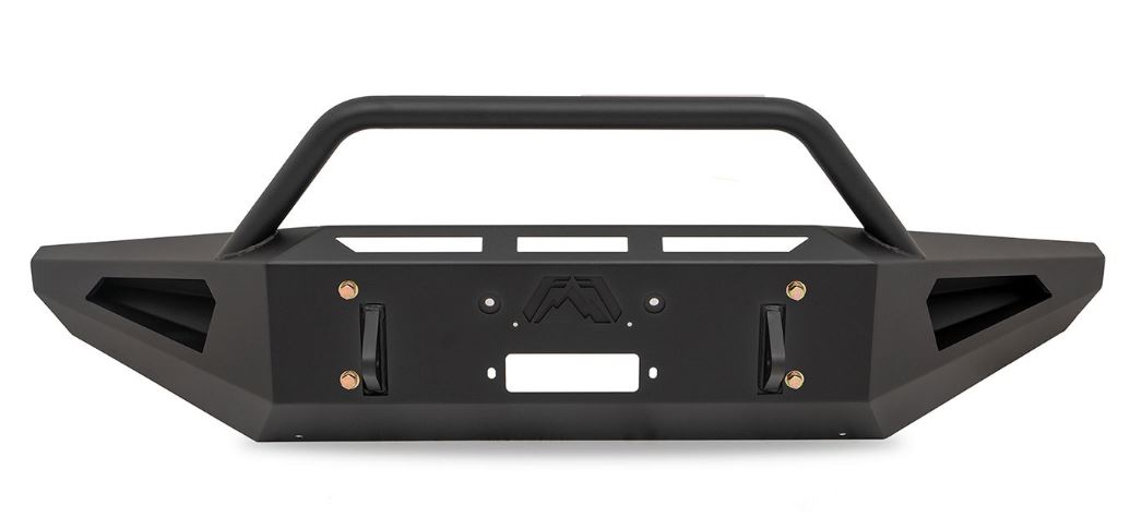 Black Steel - One Piece Design; Direct Fit; Mounting Hardware Included; Without Grille Guard; Without Winch Mount; With Tow Hooks; With OE Fog Light Cutouts/ Will Accept 3X3 Cube Light With Slight Bracket Modification; Powder Coated Gloss B