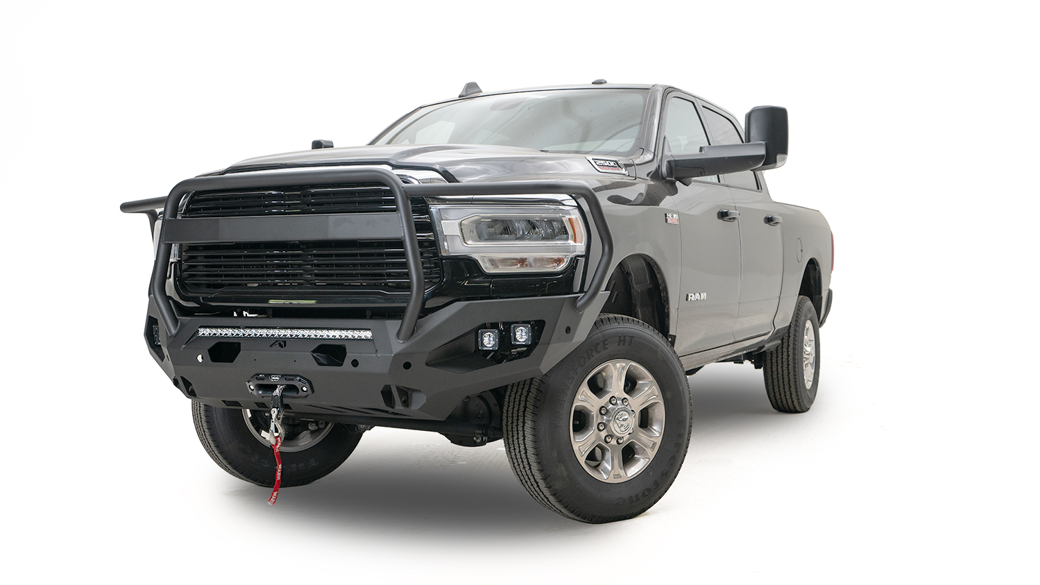 Black Steel - One Piece Design; Direct Fit; Mounting Hardware Included; With Pre-Runner Guard; Without Winch Mount; With Tow Hooks; With OE Fog Light Cutouts/ Will Accept 3X3 Cube Light With Slight Bracket Modification; Powder Coated Black