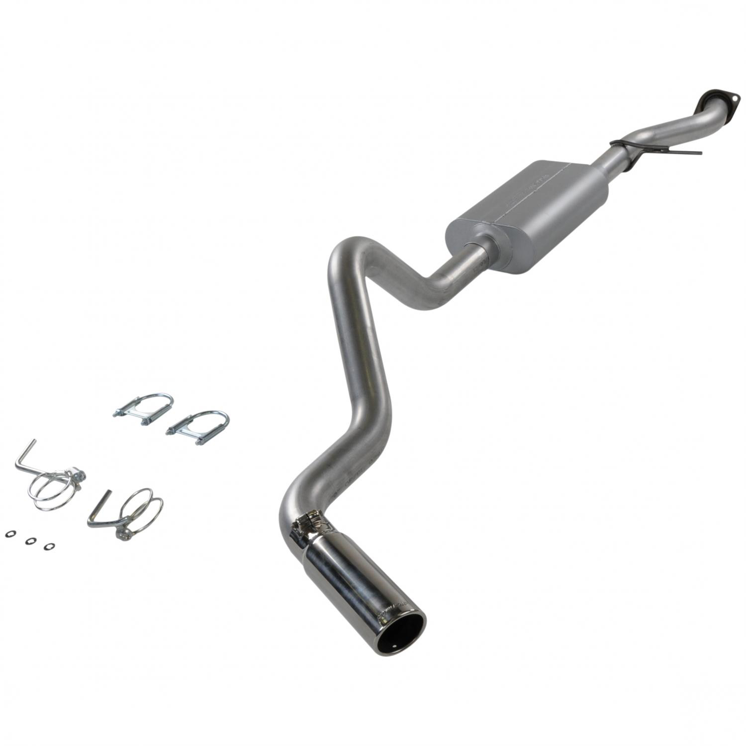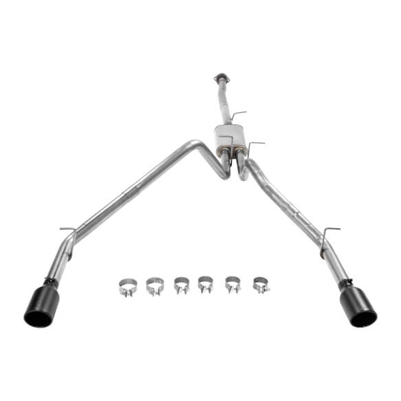 FlowFX Cat-Back System - 409S Stainless Steel; With FlowFX Series Muffler; 3 Inch Pipe Diameter; Single Exhaust With Dual Exit; Dual Same Side Before Passenger Rear Tire Exit; Dual 4 Inch Black Ceramic Coated 304 Stainless Steel Tips With F