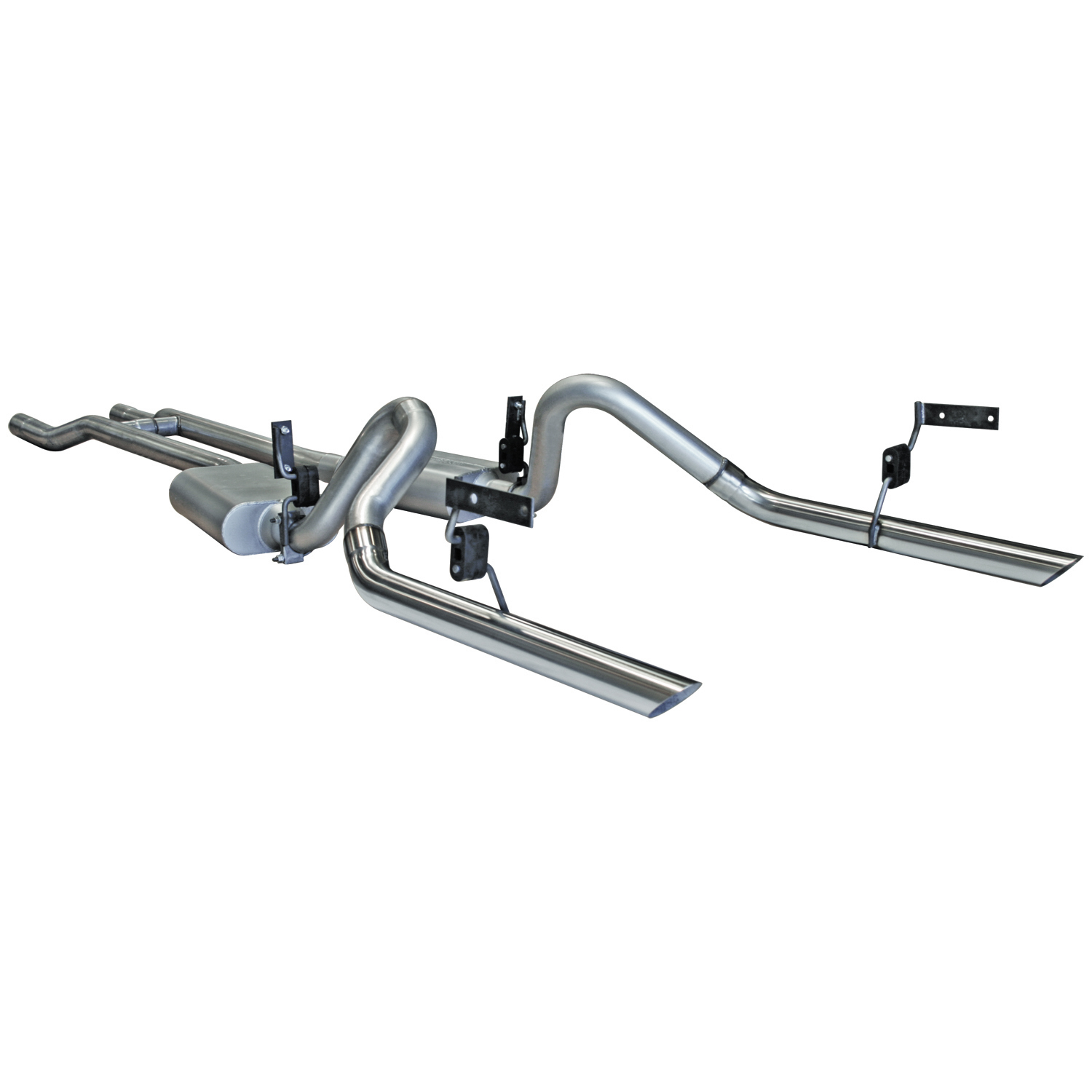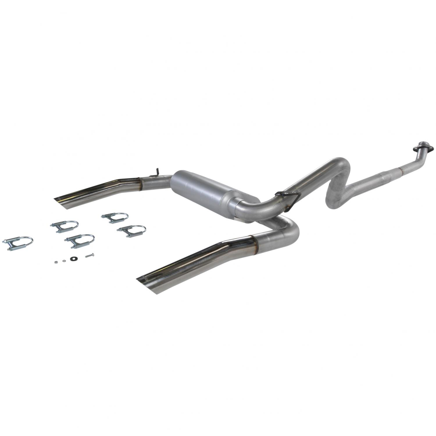 FlowFX Cat-Back System - 409S Stainless Steel; With FlowFX Series Muffler; 3 Inch Pipe Diameter; Single Exhaust With Dual Exit; Dual Same Side Before Passenger Rear Tire Exit; Dual 4 Inch Black Ceramic Coated 304 Stainless Steel Tips With F