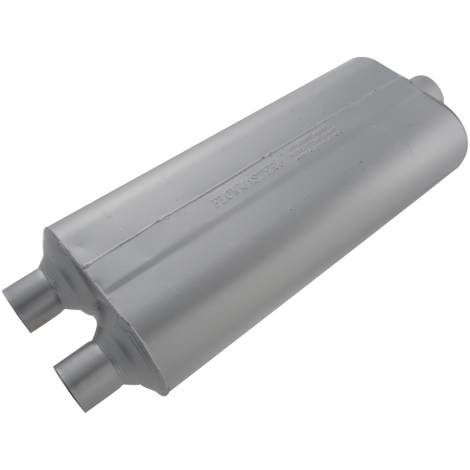 FLOWMASTER 52571 70 SERIES BIG BLOCK II70 Series Big Block II 10 Inch Width X 5 Inch Height Aluminized Steel Case; Single 2-1/2 Inch Offset Inlet; Single 2-1/2 Inch Center Outlet; 22 Inch Body/28 Inch Overall Length; Modifications To The Exhaust System May Be Necessary For InstMFG: FLOWMASTERMFG Part Number: 52571F1352571ships from manufacturer $405.46 Details...