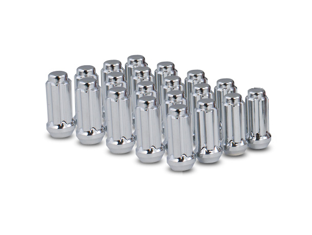 5 Lug Kit; 14 Millimeter x 2 Thread Size; 60 Degree Conical; Acorn Duplex; 2 Inch Overall Length; 6 Spline Tool; With 20 Chrome Plated Steel Lug Nuts/ Socket Key