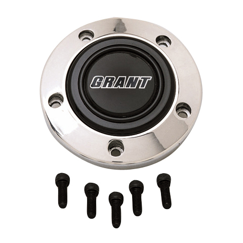 For Grant Signature Series And Classic 5 Steering Wheels With A 5 Bolt Mounting Pattern; Bolt On Type; Polished; With Black/ White Grant Logo On Black; Aluminum; With Installation Screws