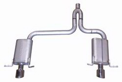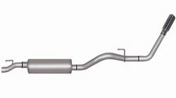 Black Elite Cat-Back Single Exhaust System; Stainless; 3in. Tubing; 8in. Rd Body; 3in. Offset In/Outlet; L-24in.; 4in. Black Ceramic Rolled Slash-Cut Tip; Exit Behind Rear Tire; Crew Cab w/67.4 in./5 ft. 7.4 in. Bed;Extended Cab w/76.3 in./