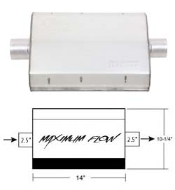 4-3/4 Inch Height x 10-1/4 Inch Width Black Aluminized Steel Case; Single 2-1/2 Inch Center Inlet; Single 2-1/2 Inch Center Outlet; 14 Inch Length