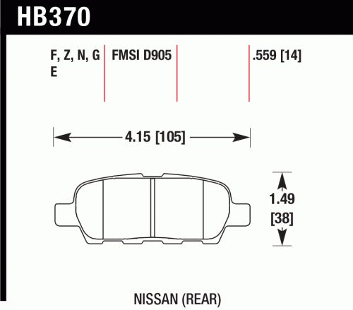 HAWK HB370F.559 PADS HPS INFINITI/NISSANHPS Series - FMSI Number D905; Ferro-Carbon; Set Of 4 MFG: HAWK PERFORMANCEMFG Part Number: HB370F.559H27HB370F559ships from manufacturer $165.70 Details...