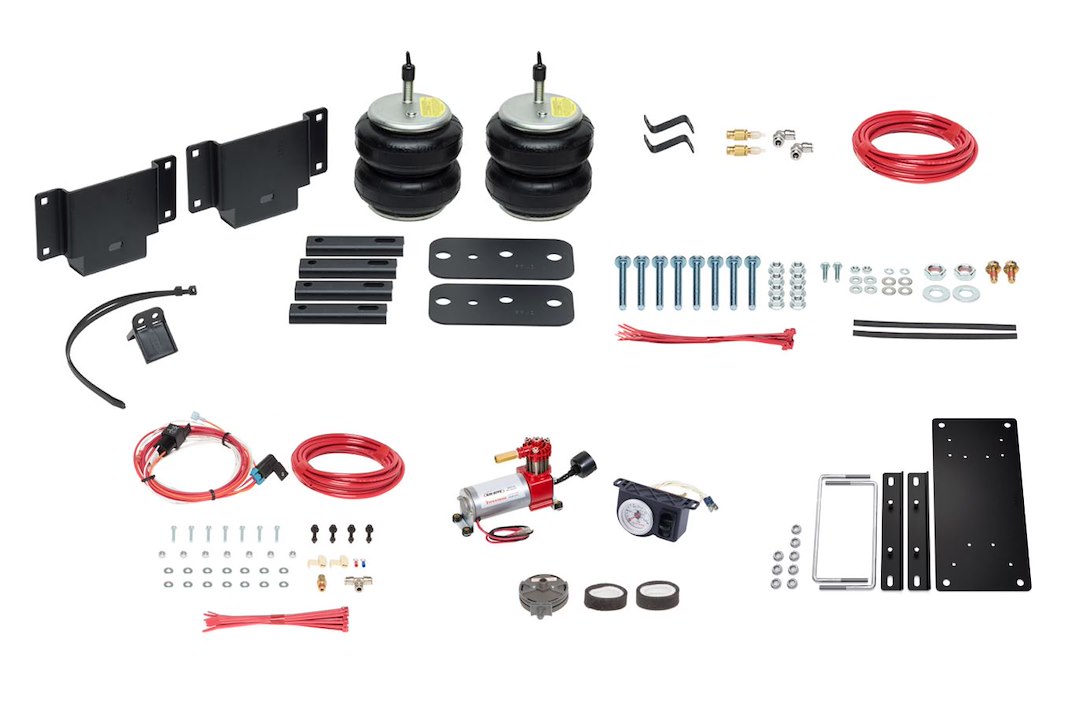 Air Spring; Analog; Frame Mount; Up To 5000 Pound Leveling Capacity; Adjustable From 5 To 100 PSI; Rubber; With Air Springs/ Air Compressor/ Air Accessories/ Hardware