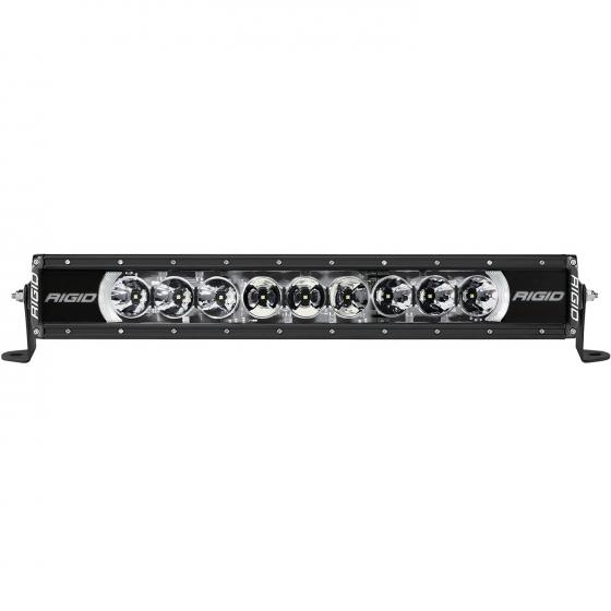 LED Bulb; 20 Inch Length; 9 Clear Bulb; Multi Color Option Back Lighting; 76 Watt/ Amp Draw 5.4 Amp At 14 Volts; Spot/ Drive Combo Beam; 7128 Raw Lumens; Clear Polycarbonate Lens; Powder Coated Black Aluminum Alloy Housing; Surface Mount; With Mounting Brackets/ Wiring Harness And Media Pack