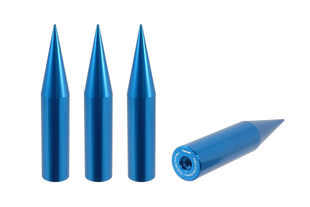 Anodized; Blue; Billet Aluminum; 136 Millimeter Length; Spike Style; Set Of 4; Use With True Spike Lug Nuts Must Be Sold Separately