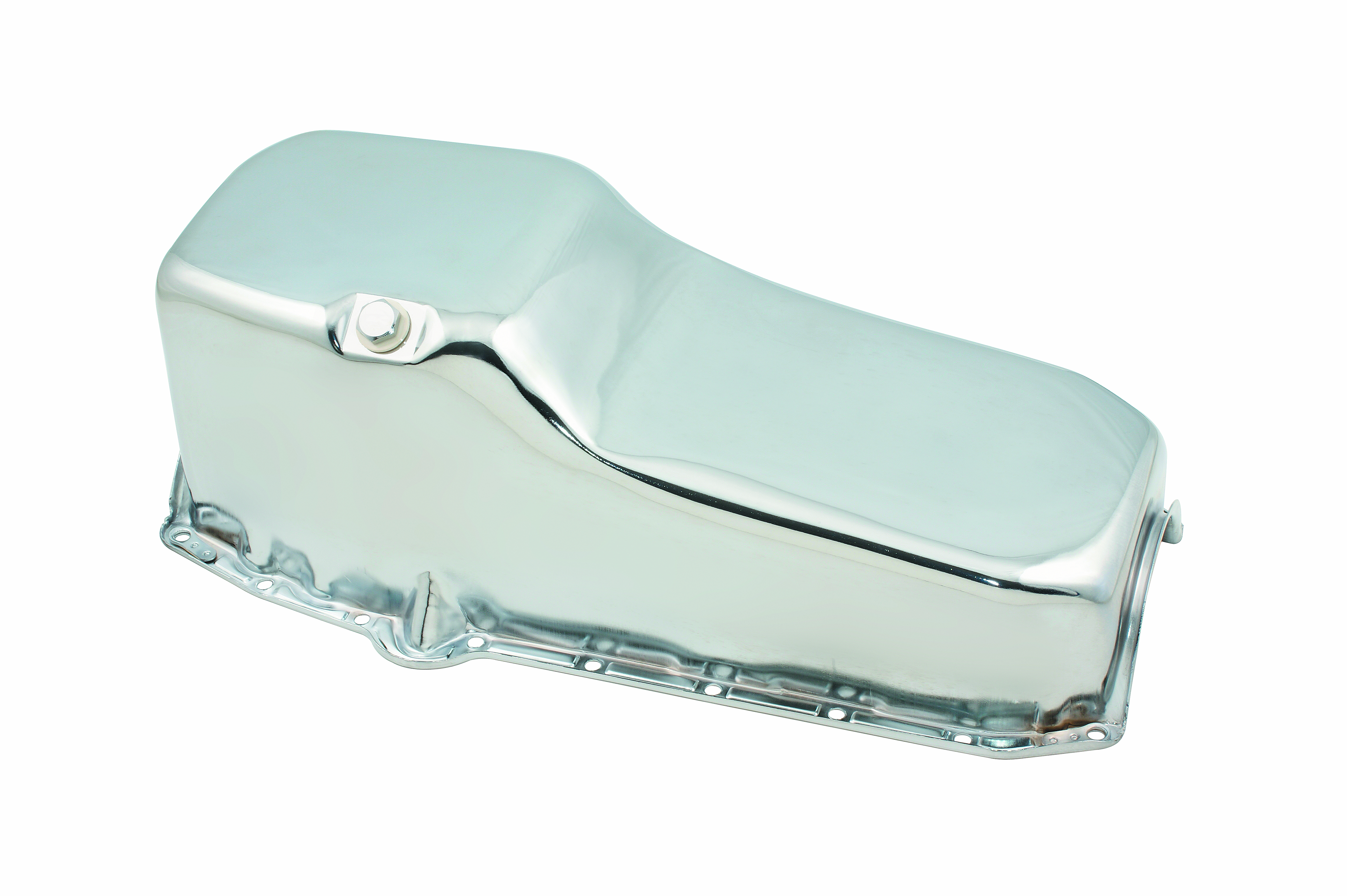 For Use With 1955-1979 Chevy Small Block 283/ 350 Cubic Inch; 5 Quart Capacity; Without Windage Tray; Left Side Dipstick; Rear Wet Sump; With Baffle; Chrome Plated; Steel