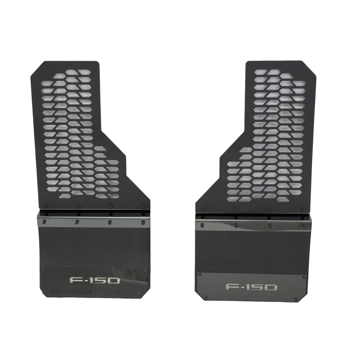 Mud Skinsï¾™ Hex Shieldï¾™ Direct Fit; Set Of 2; Flat; F150 Logo; Carbon Black;