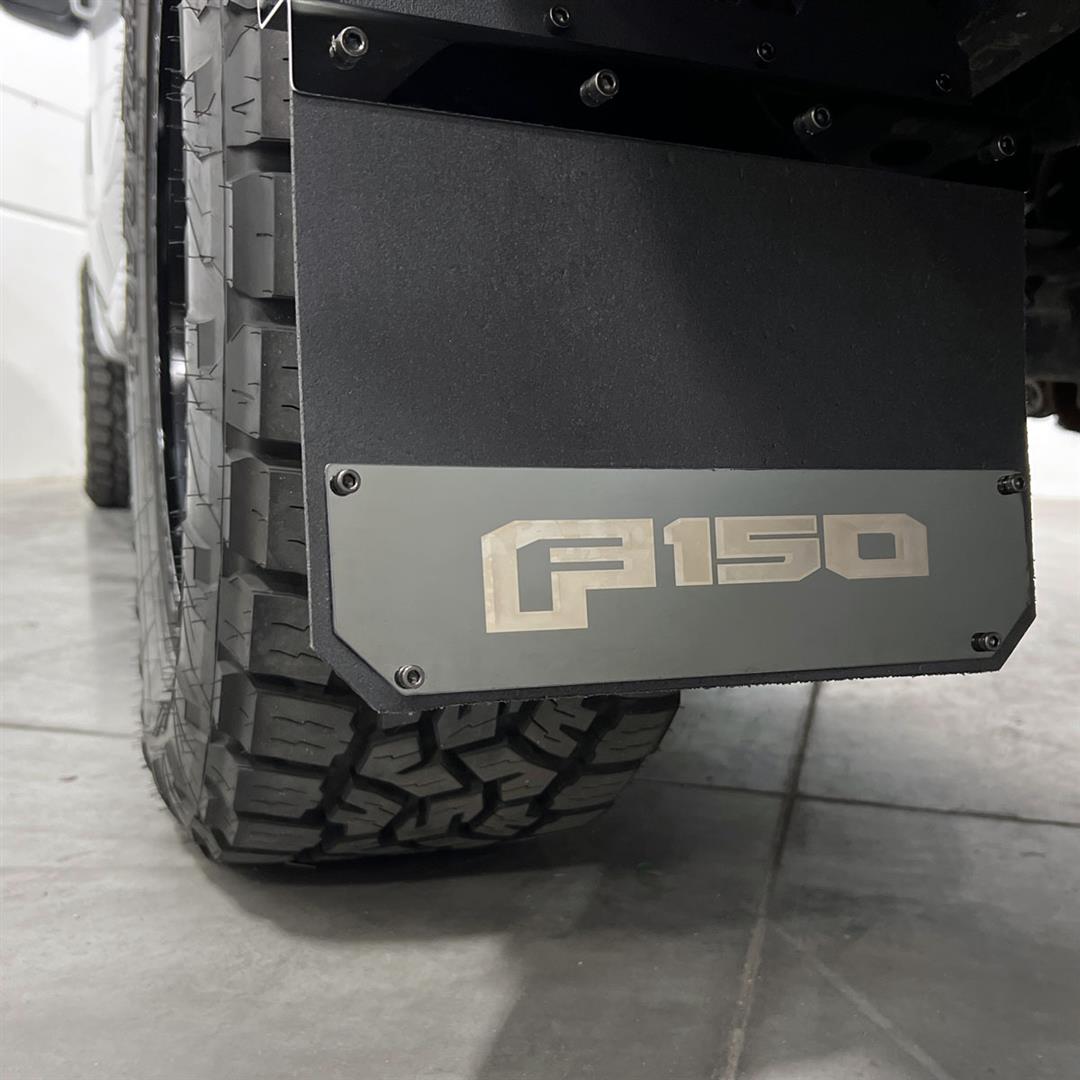 Mud Skinsï¾™ Hex Shieldï¾™ Direct Fit; Set Of 2; Flat; F150 Logo; Carbon Black;
