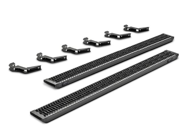 Textured Powder Coated; Black; Aluminum; Unlighted; Rocker Panel Mount; With Sure Grip Tread And Aluminum End Caps