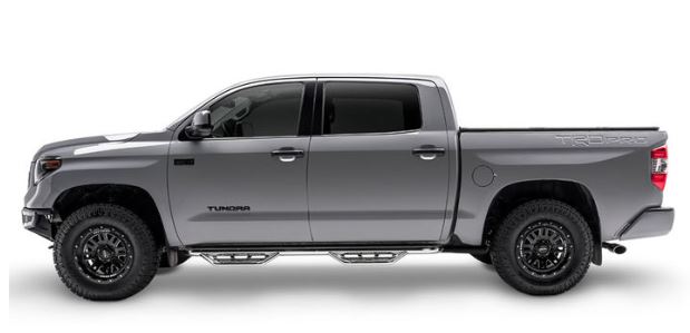 With Drop Down Steps; 3 Inch Round Bent; Polished Stainless Steel; Welded Vented End Caps; Rocker Panel Mount