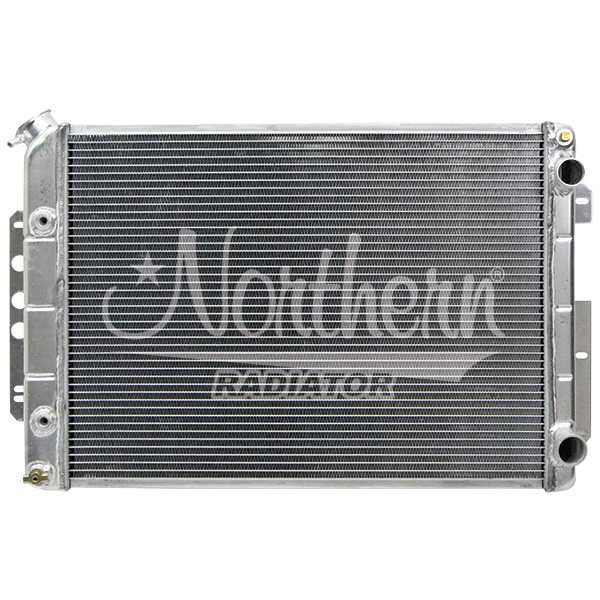 Overall Dimensions 27-3/4 Inch Width x 18-1/2 Inch Height x 3-1/8 Inch Depth; Core Dimensions 23-7/8 Inch Width x 17-3/8 Inch Height x 2-1/4 Inch Depth; 2 Rows Of 1 Inch Tubes; Crossflow; Aluminum; 1-3/8 Inch Inlet x 1-1/2 Inch Outlet; With 7 Plate Aluminum Transmission Cooler With 5/16 Inch Inverted Flare Fittings