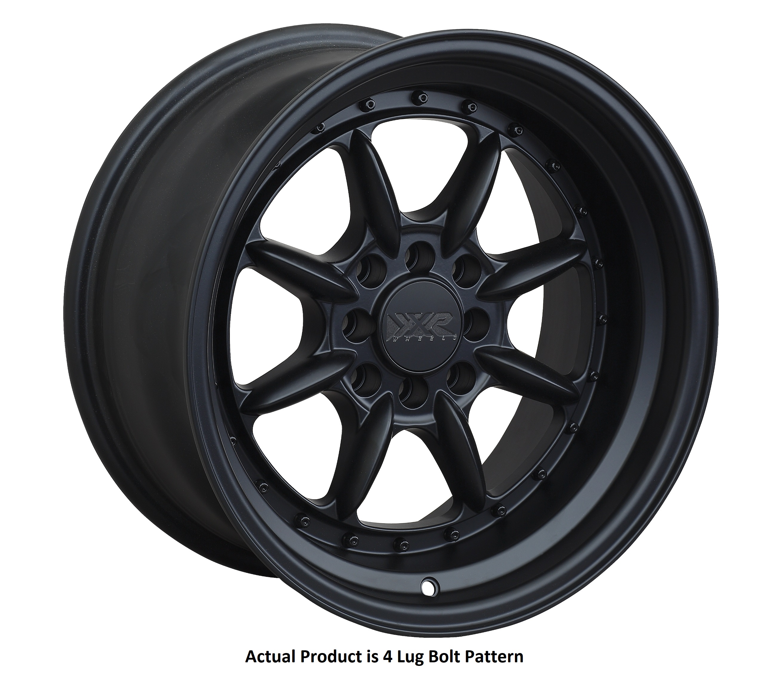 15 Inch Diameter x 8 Inch Width; 4 x 100 Millimeter/ 4 x 3.94 Inch/ 4 x 114.3 Millimeter/ 4 x 4.50 Inch Bolt Patterns; 60 Degree Conical Seat Lug; 20 Millimeter Offset; 5.29 Inch Backspacing; 73.10 Millimeter Center Bore; 8 Spoke; 1 Piece Cast Aluminum Construction; Painted; Black; 1580 Pound Load Capacity; Compatible With TPMS (Tire Pressure Monitoring System); 31 Inch Max Tire Diameter; With XXR Logo Center Cap; Single