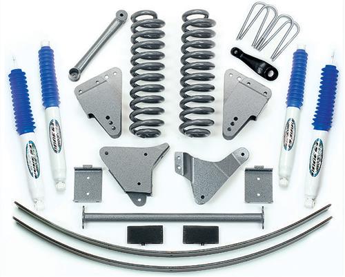 6 Inch Front Lift; 6 Inch Rear Lift; With Front And Rear ES9000 Shock Absorbers; Black Components/ White Shock Absorbers; Includes Front Coil Springs/ Radius Arm Brackets/ I-Beam Brackets/ Sway Bar Links/ Rear Lift Blocks With Add-A-Leafs and U-Bolts/ All Necessary Hardware/ Installation Sheet