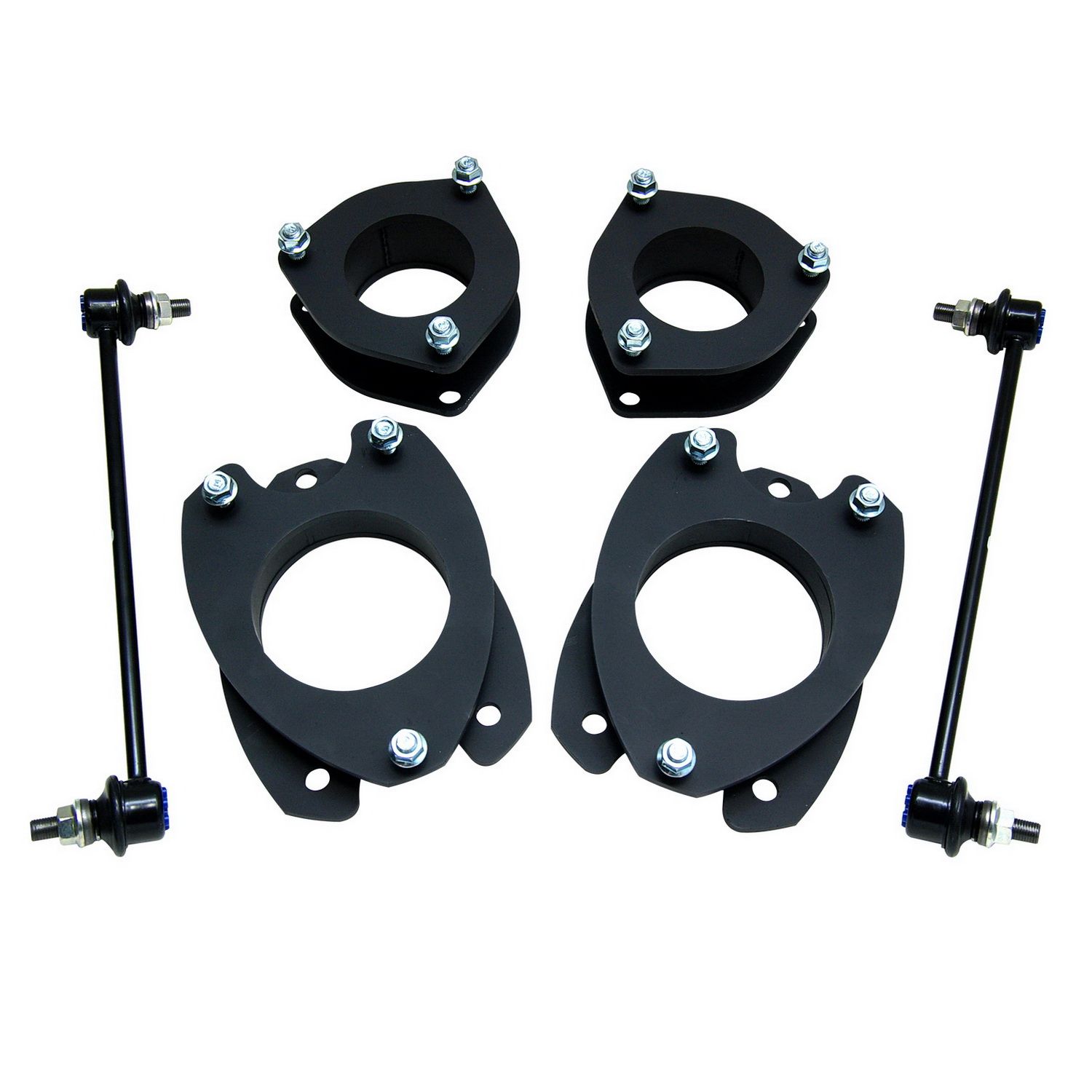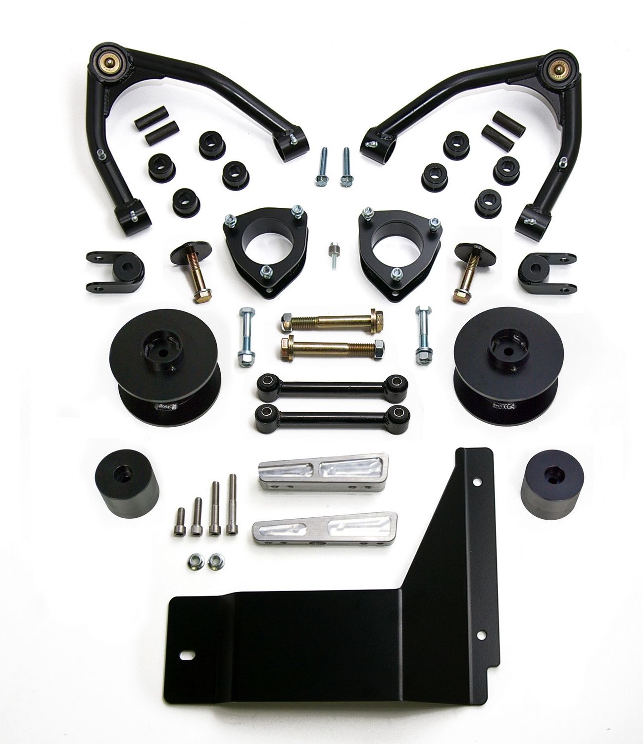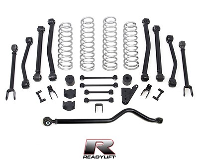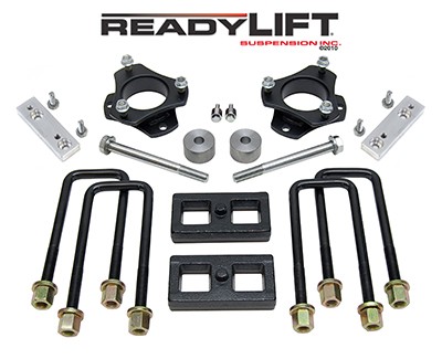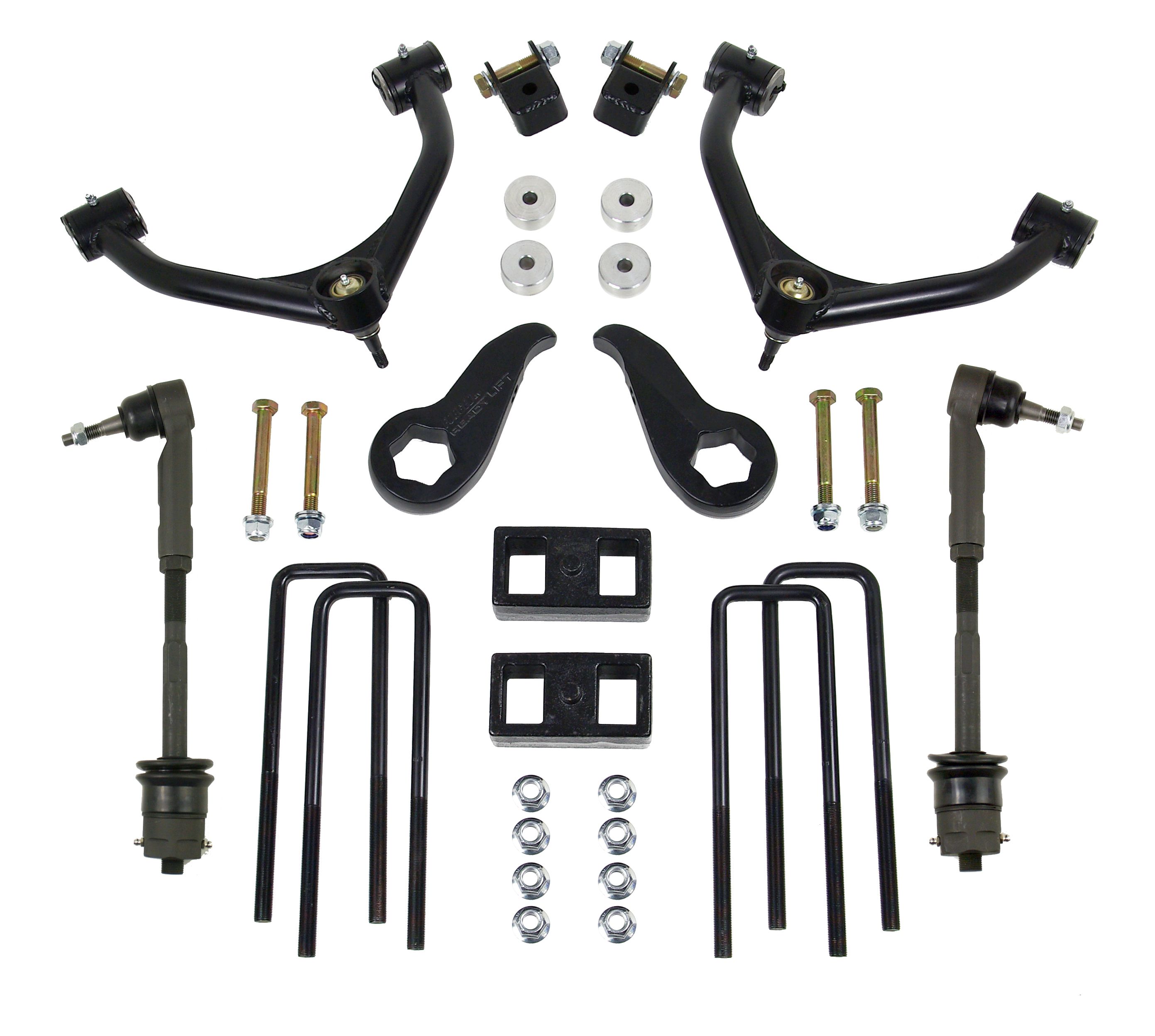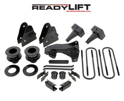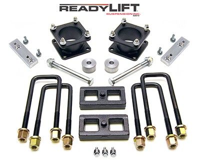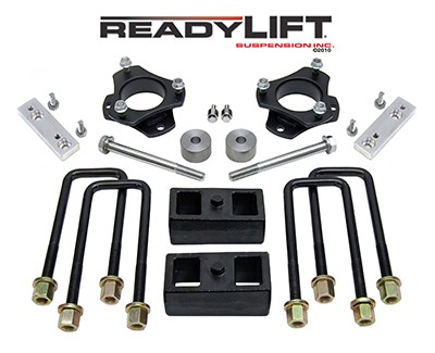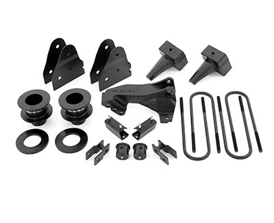 3 Inch Front Lift; 3 Inch Rear Lift; Without Shock Absorbers In Kit - Shock Change Not Necessary; Black Components; Includes Front Strut Extensions/ Rear Coil Spring Spacers/ Differential Drop Spacers/ Stabilizer Drop Spacers/ Skid Plate Sp
