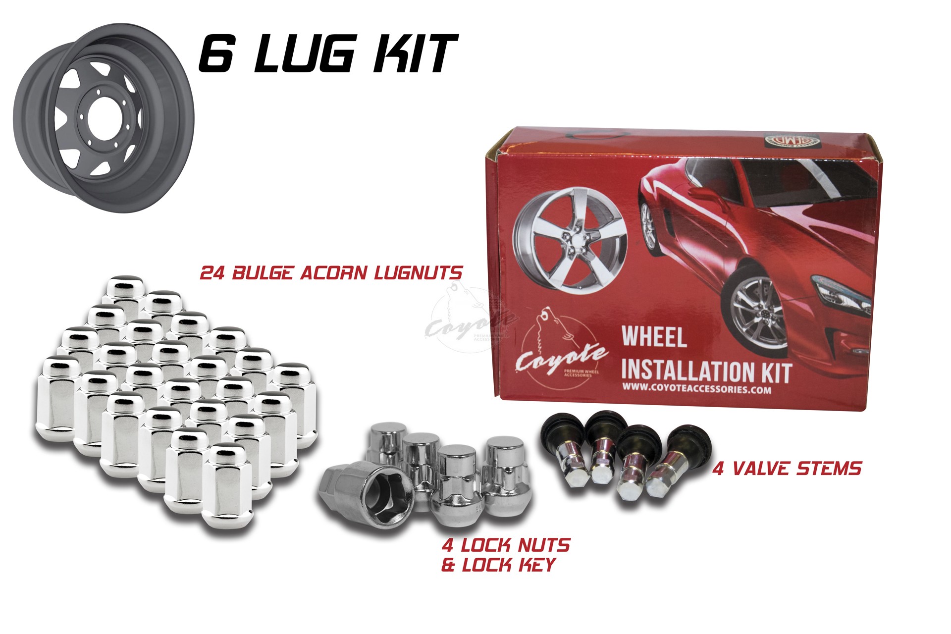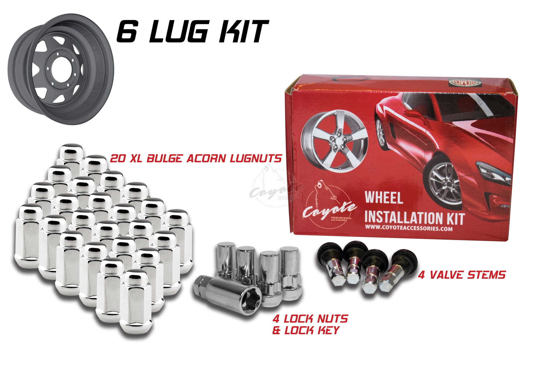 COYOTE 64K645 Wheel Installation Kit6 Lug Kit; 12 Millimeter x 1.5 Thread Size; 60 Degree Conical; Spline Drive; AcoMFG: COYOTE WHEEL ACCESSORIESMFG Part Number: 64K645REV64K645ships from manufacturer $73.33 Details...