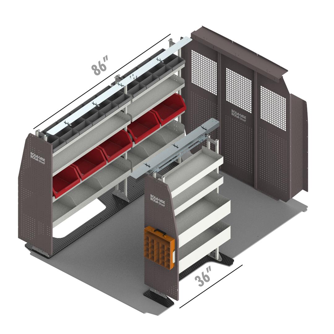RSFMHRSP- DR Van Storage System KitDriver Side Service Bin Package; With Eight Shelves (Four 50 Inch Length x 12 InMFG: ROLACASEMFG Part Number: RSFMHRSP- DRROLRSFMHRSPDships from manufacturer $2,398.35 Details...