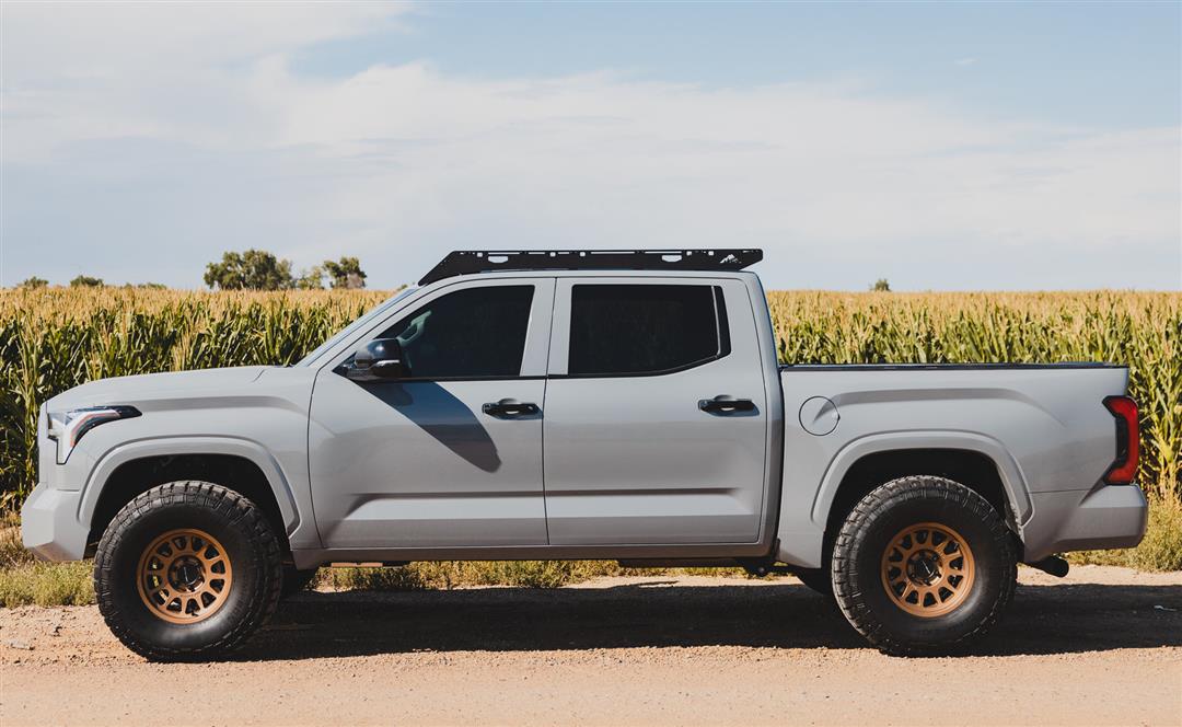 Direct Fit; Powder Coat; Textured Black Anodized; Aluminum; With 2 Side Plates/ 7 Black Crossbars/ 4 Mounting Brackets and Rivet Attachments/ 1 Fairing with Edge Trim/ Mounting Hardware