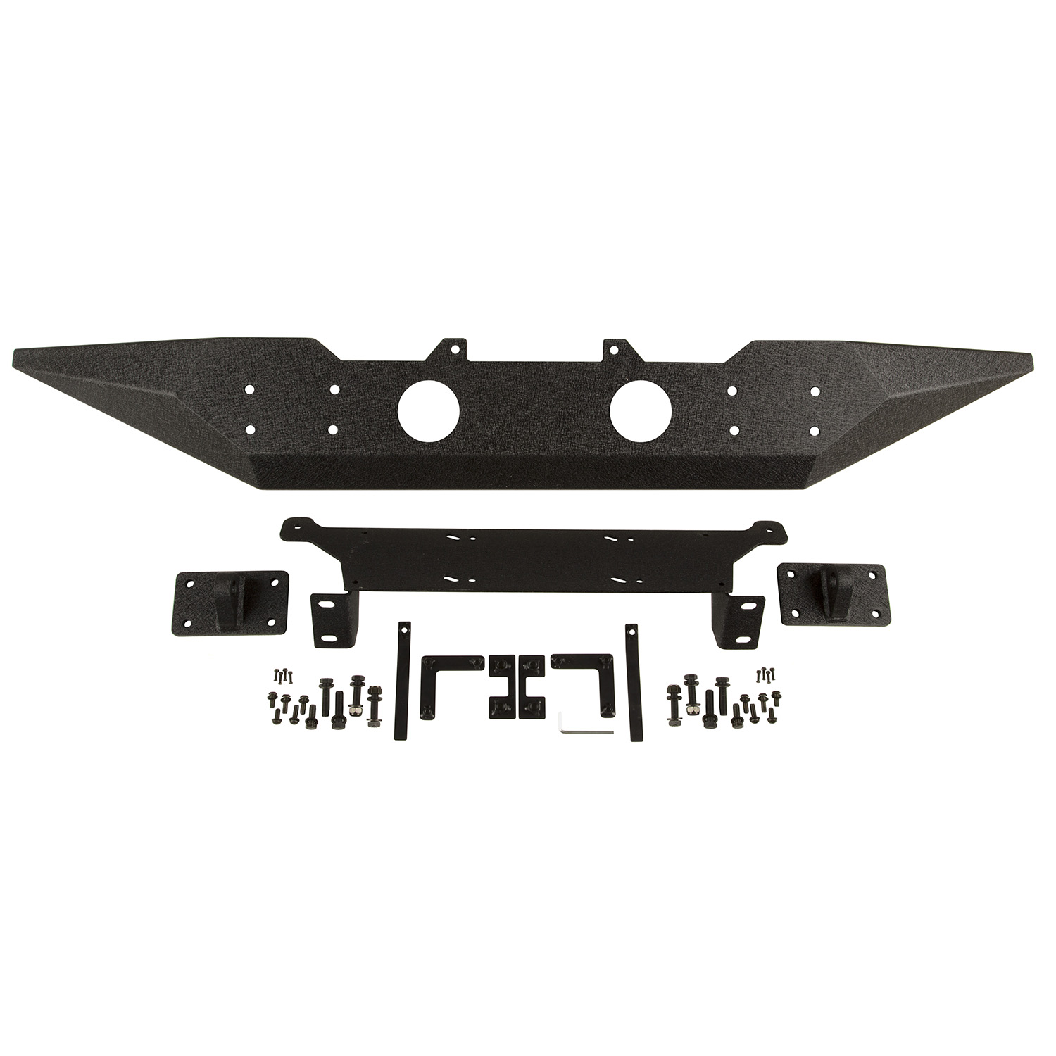 SPARTAN (TM) - One Piece Design; Direct-Fit; Mounting Hardware Included; With Grill Guard; With Winch Mount; Without Tow Hook Mounts/ With D-Ring Mounts; With Light Cutouts For OE Style Fog Lights; Powder Coated Black Steel; With High Clear