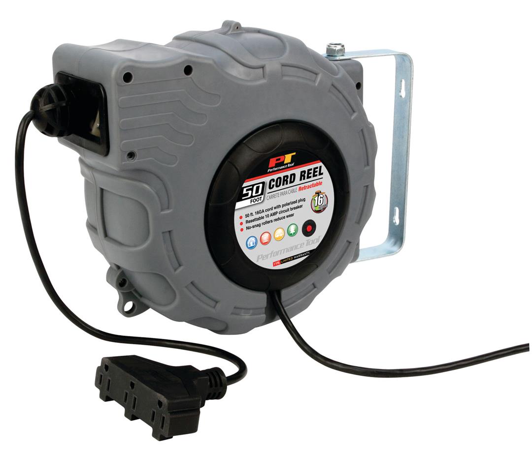PERFORMANCE TOOL W2273 50FT RETRACTABLE CORD REELRetractable; 50 Foot of 16 Gauge Cord With Polarized Plug and 3 Grounded 10 AmpMFG: PERFORMANCE TOOLMFG Part Number: W2273PTLW2273 $241.81 Details...