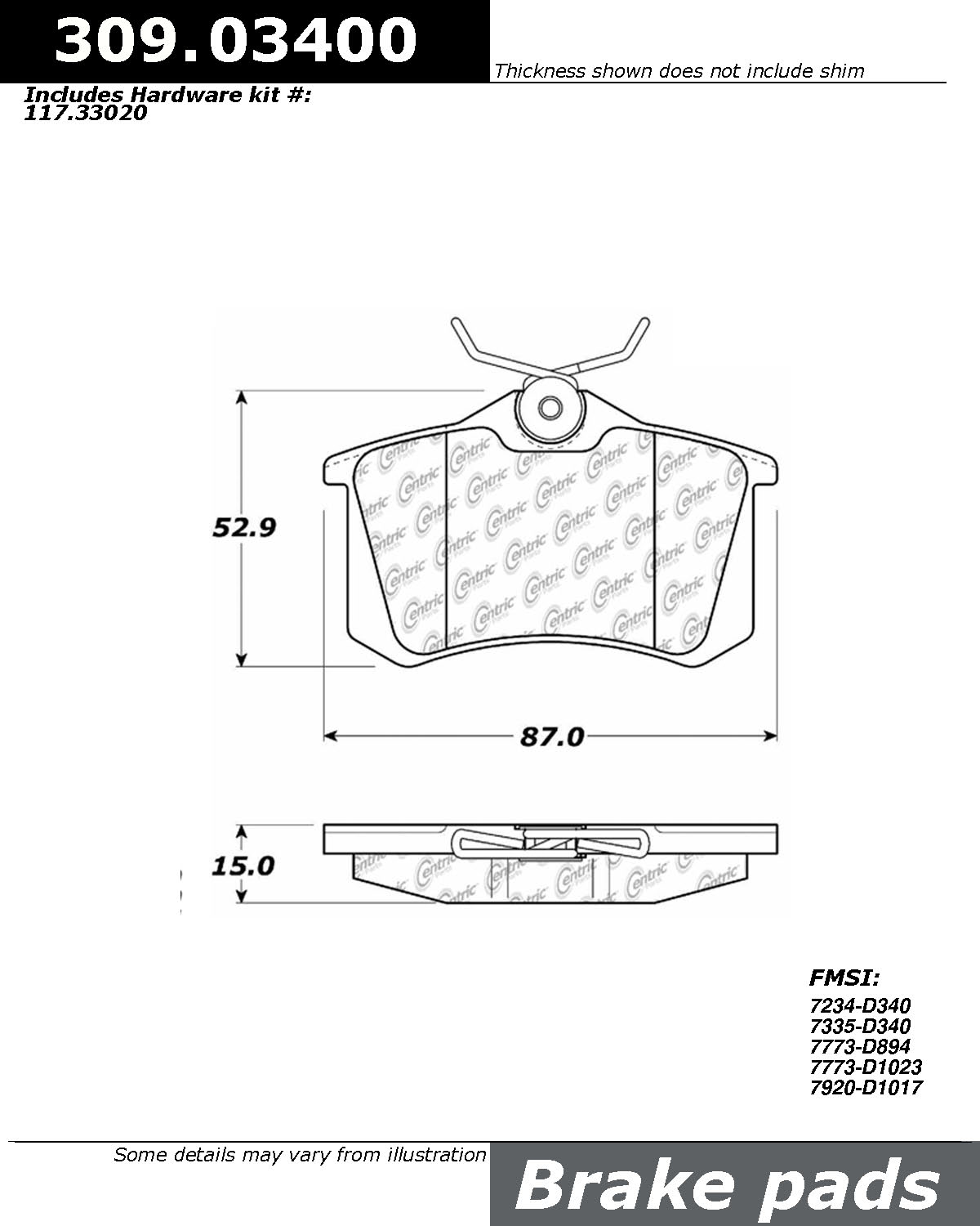 STOP TECH 309.03400 STOPTECH PERFORMANCE PADStreet Performance - FMSI Number D340; Para-Aramid Composite; Set Of 4MFG: STOP TECHMFG Part Number: 309.03400P7830903400ships from manufacturer $128.49 Details...
