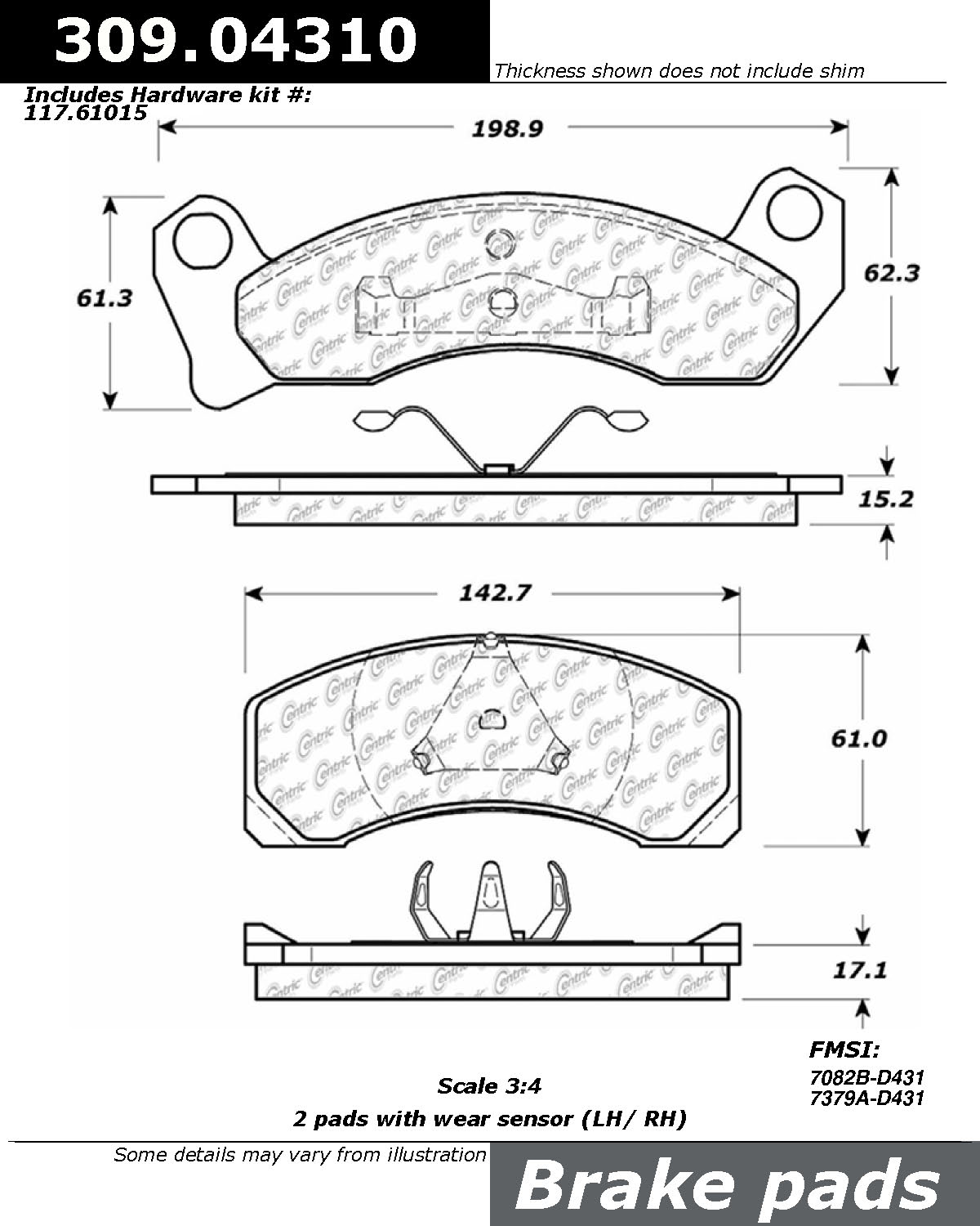 Brake PadPosi Quiet ï¾® FMSI Number D1430; Ceramic; Set Of 4; 0 Millimeter ThicknessMFG: STOP TECHMFG Part Number: 105.14302P7810514302 $110.05 Details...