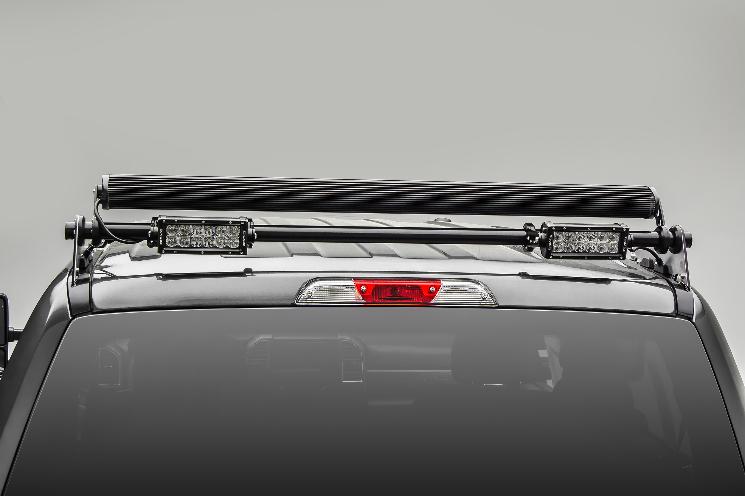 Rear Roof Mount; Mounts Four Light Bars; Powder Coated; Gloss Black; Steel