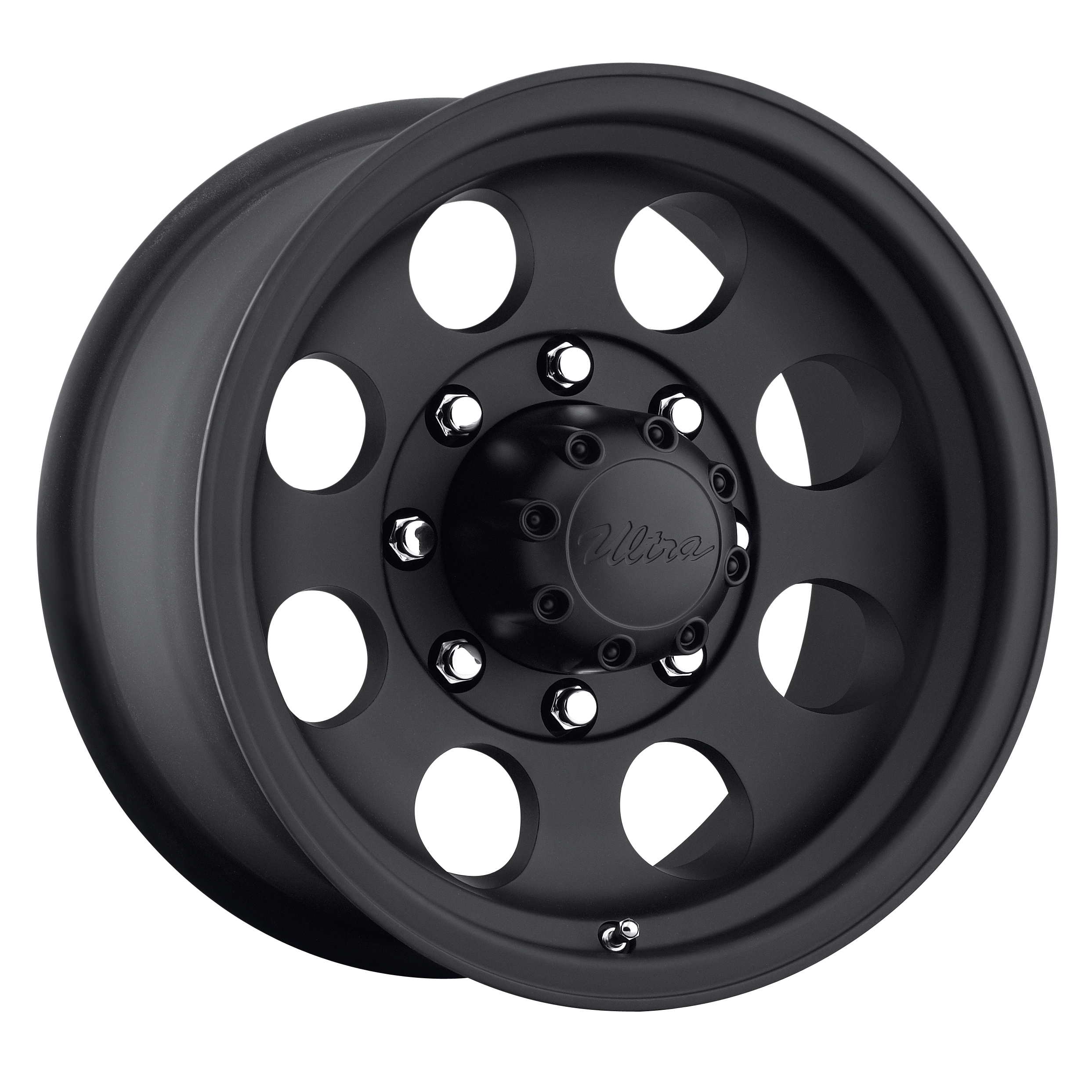 17 Inch Diameter x 9 Inch Width; 8 x 165.1 Millimeter/ 8 x 6.50 Inch Bolt Pattern; -12 Millimeter Offset; 4.53 Inch Backspacing; 60 Degree Conical Seat Lug; 130.18 Millimeter Center Bore; 8 Hole; 1 Piece Cast Aluminum Construction; Matte Black; 3050 Pound Load Capacity; Compatible With TPMS (Tire Pressure Monitoring System); With Ultra Logo Center Cap; Single