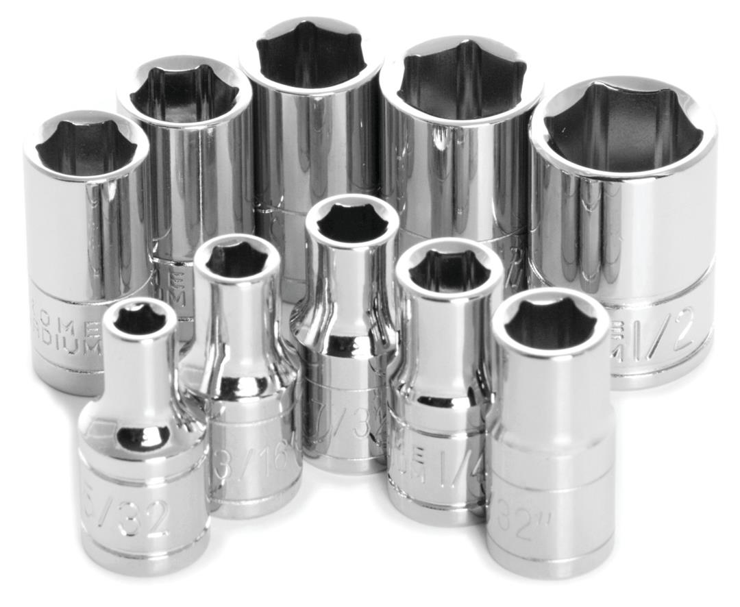 PERFORMANCE TOOL W38002 SOCKET SET3/8 Inch Drive; Standard; 6 Point; Chrome Vanadium Steel; With Size Of 1/4 Inch/MFG: PERFORMANCE TOOLMFG Part Number: W38002PTLW38002ships from manufacturer $75.86 Details...